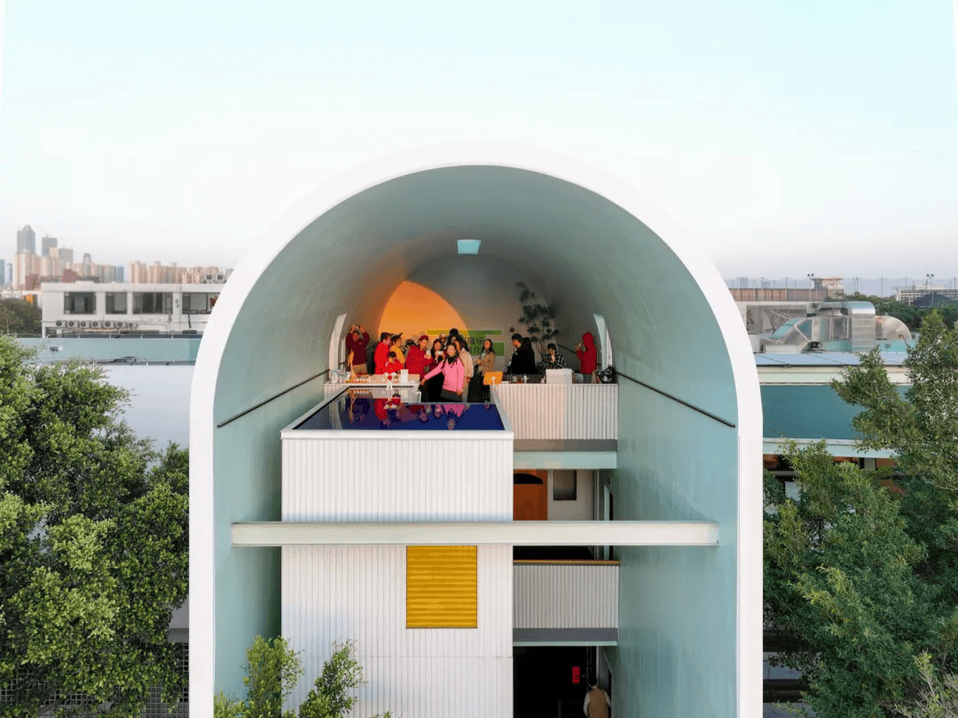 广州“扉行器”无界社区3.0实践探索:设计理念源于场地自然条件与历史背景,采用开放式空间布局,拆解传统“盒子”形态,引入自然光和风,创造流动空间体验。以大榕树为核心设计多个开放与半开放空间,如屋顶花园、冷巷和多功能社区公共区域,使用回收材料、格栅窗和可开启天窗等元素模糊室内外界限,打造真正“无界”的社区环境,体现了创新与人文关怀的融合。