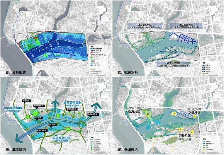羽岛片区:通过岛屿型水体,营造多元水陆交互的科创文旅融合载体,促进科技与文化的交流与发展。