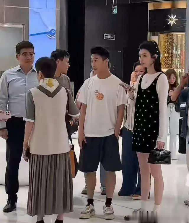 免税店的“普通夫妻”状态:奚梦瑶挽着何猷君的胳膊闲逛,何超欣低调跟随,三人状态自然——豪门也可以有“烟火气”,幸福从不需要“完美人设”;