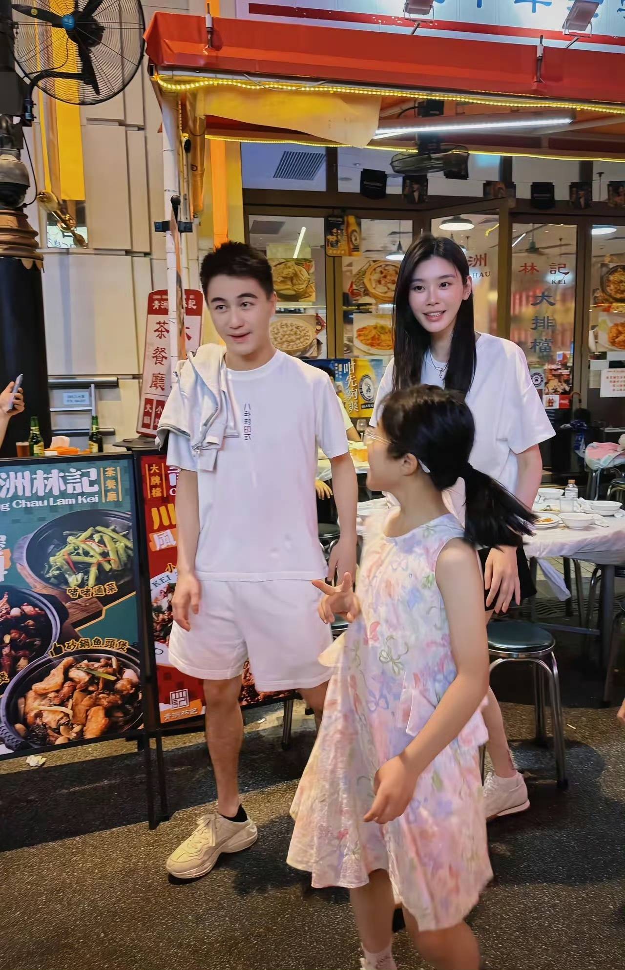 迪士尼的“奶爸时刻”:何猷君穿休闲装陪孩子等表演,身体前倾认真倾听,穿搭的松弛感与陪伴的专注度形成呼应——真正的“好爸爸”,不需要刻意表演;