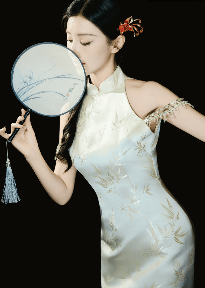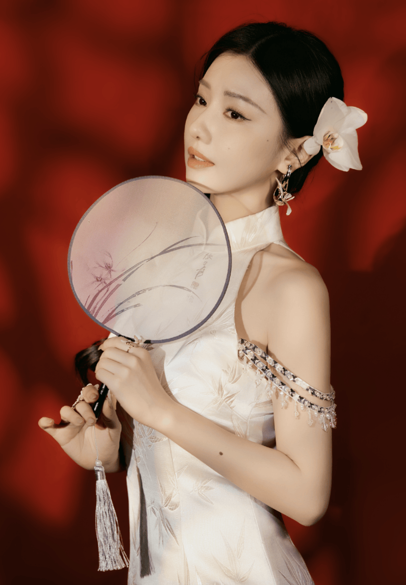 王鹤润:国风旗袍轻执团扇,柔美清丽中透着灵动,新年氛围感拉满。