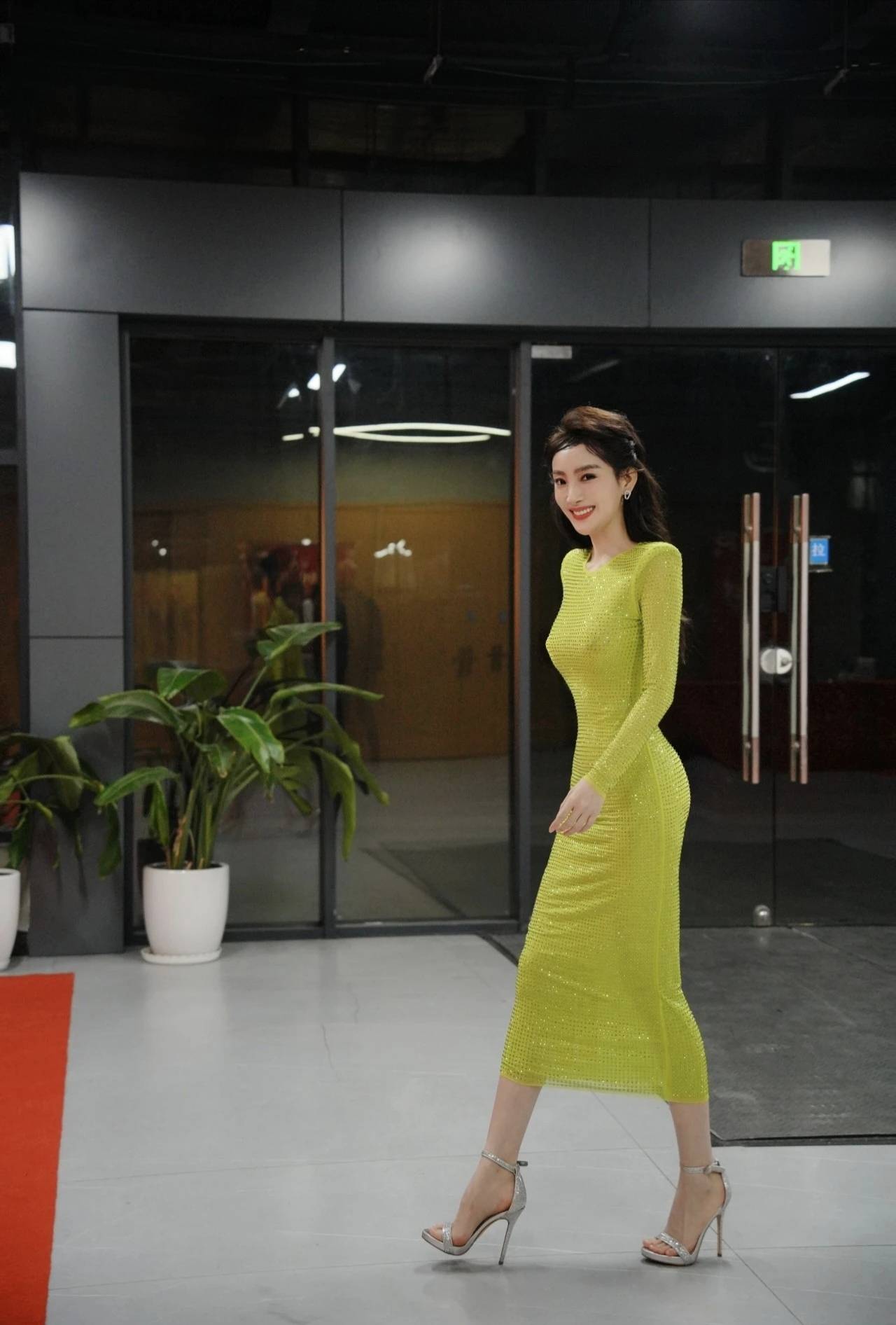 马卉以荧光绿长裙亮相活动,修身亮片设计如移动的disco球,搭配银色高跟鞋与钻石配饰,成为全场最亮星!