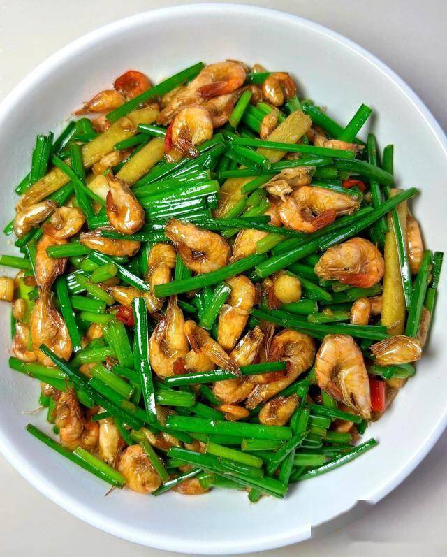 二、韭菜花炒河虾