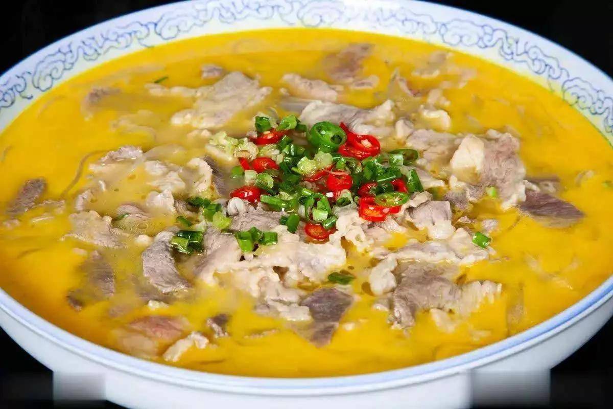 6. 煮牛肉片:将焯水后的肥牛片放入炖好的汤中,用筷子轻轻分散,保持汤面清澈。煮1-2分钟至牛肉片变色熟透。