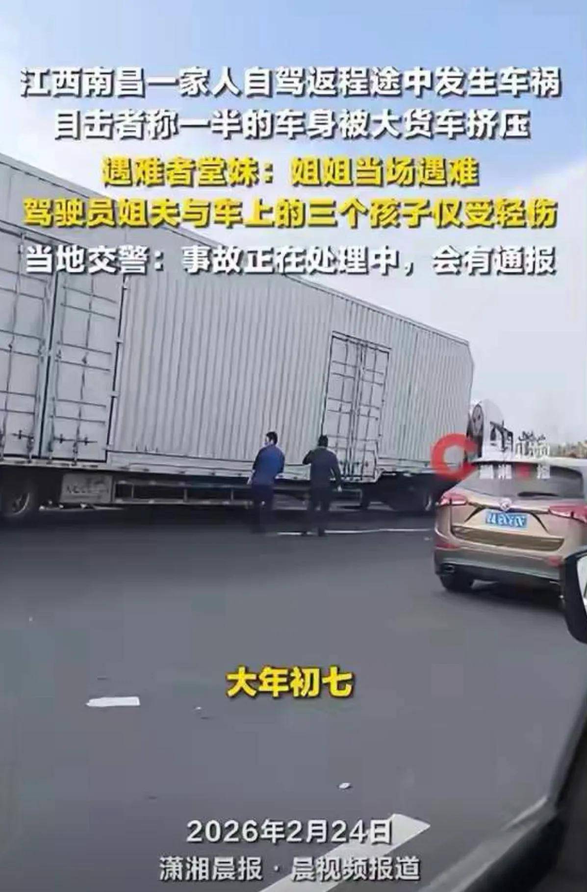 2026年2月24日,有媒体披露,江西某段高速公路上,一辆自驾返程的小客车遭遇严重车祸,导致车内一家五口1人死亡、3人受伤。 随着现场画面的曝光和目击者的讲述,这起事故引发诸多网友的关注和热议。根据多位目击者的描述,这起事故发生在2月23日大年初七,也是返程高峰期间。