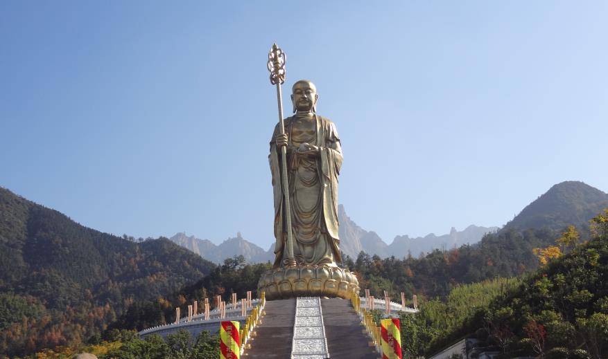 这座地藏王菩萨像是世界上最大的铜像,连同下面的莲花座,整体高度达155米,单单佛像的高度就有99米。99米这个高度并非随意而选,它与九华山有着深刻的关联。首先,九华山拥有99座山峰;其次,金地藏享年99岁;最后,这个高度与九华山现有的99座寺庙相吻合。自1995年九华山佛教协会启动地藏王菩萨像的建设工作以来,这项工程便经历了十多年的曲折与波折。