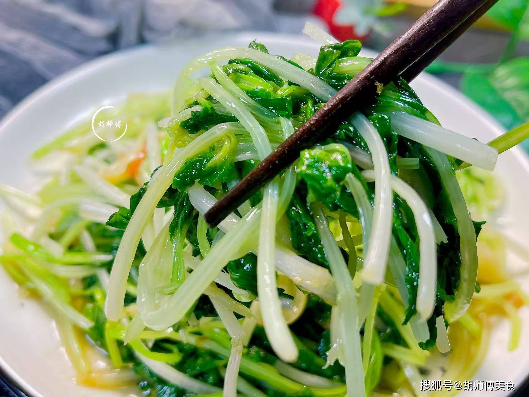 2、芹菜苗很嫩,炒的时候,一定要大火快速翻炒,如果停留了一会,就会将芹菜叶炒老炒死,导致芹菜叶吃着干巴巴的。