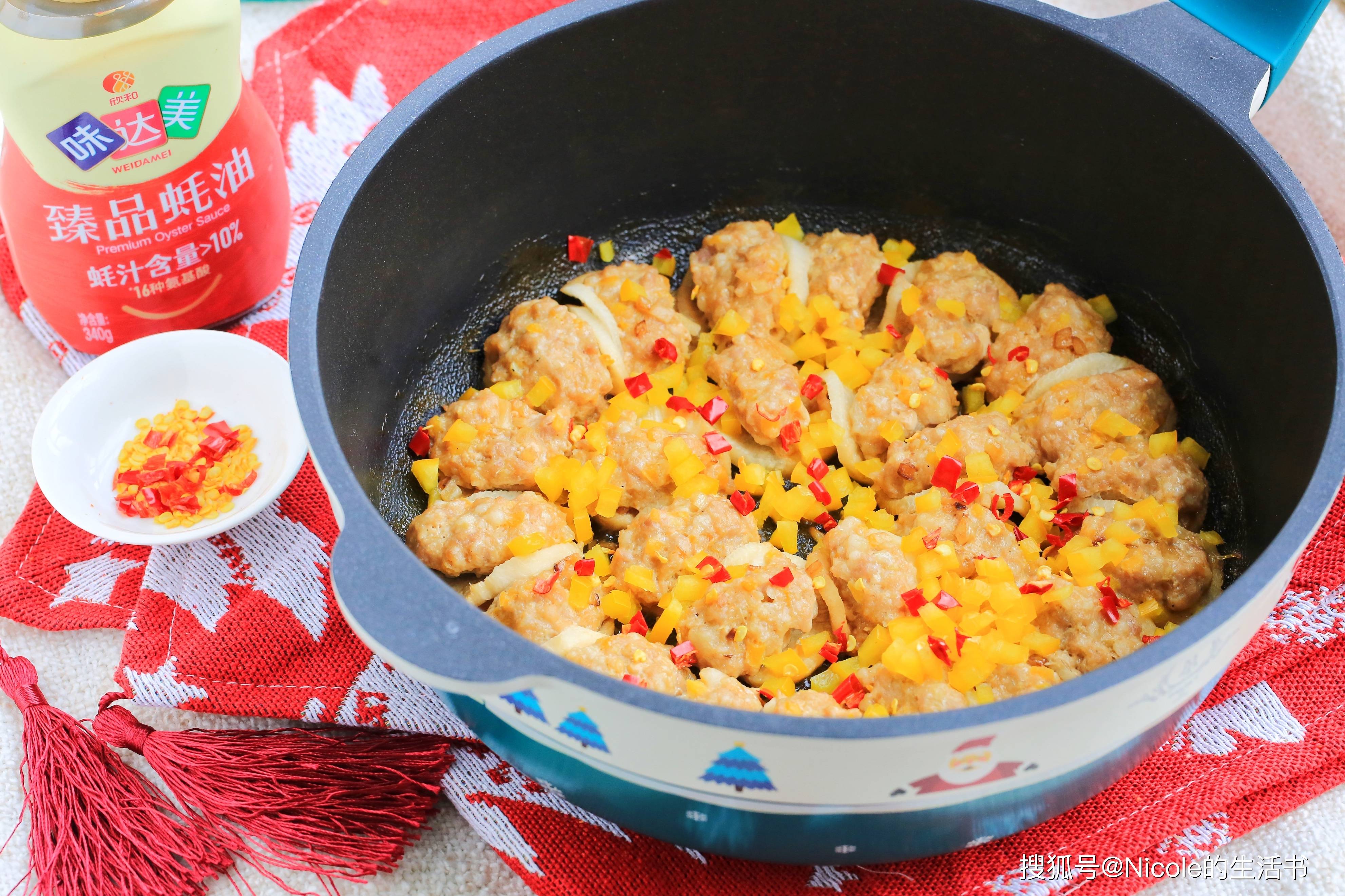 料汁的调味是这道菜的点睛之笔,蚝油搭配水淀粉和糖,鲜咸适口、滋味浓郁,淋在酿萝卜上,不仅让口感更丰富,也让色泽更光亮。彩椒的点缀让这道菜色彩缤纷,像极了新年里绚烂夺目的烟花,也让年味更浓。