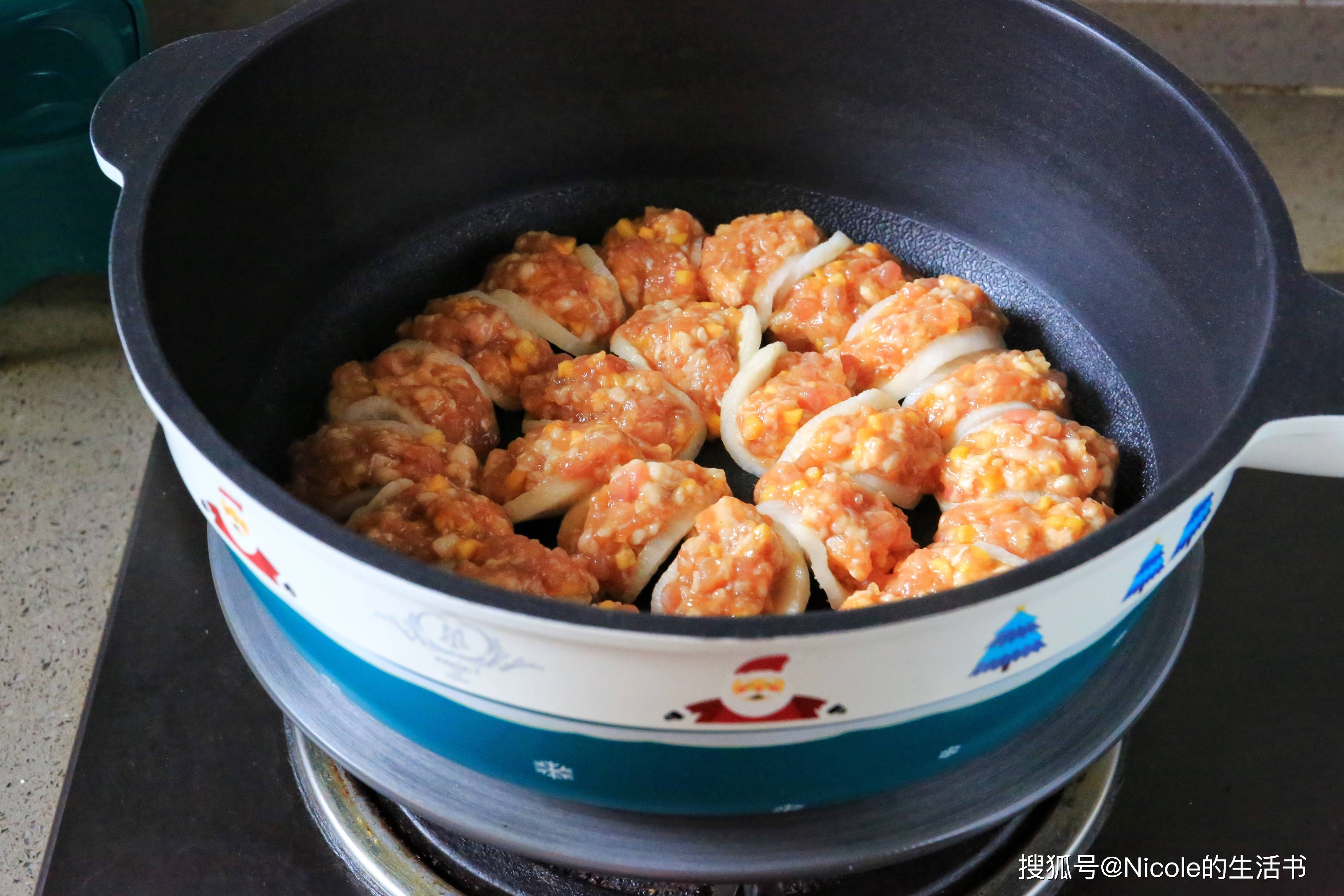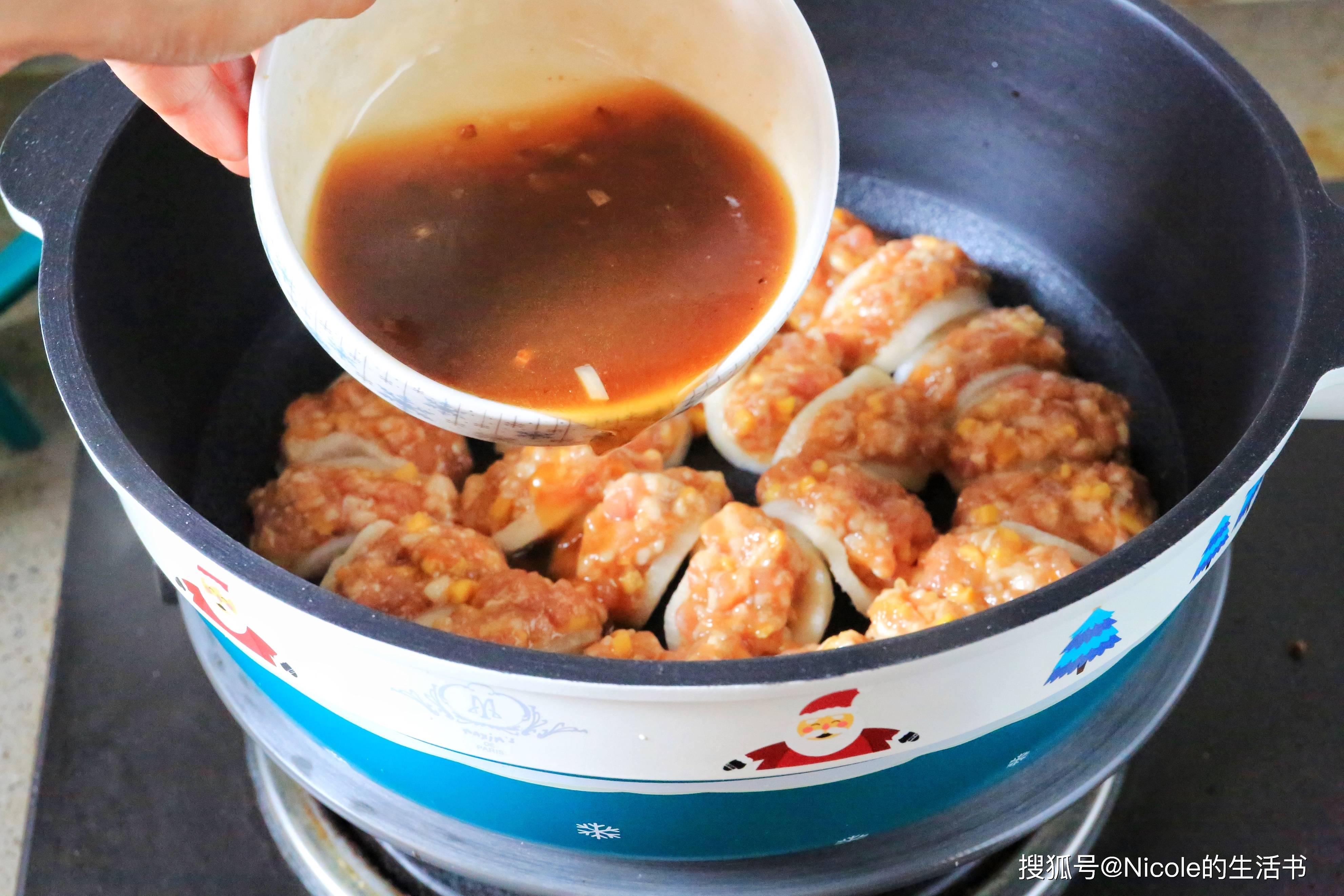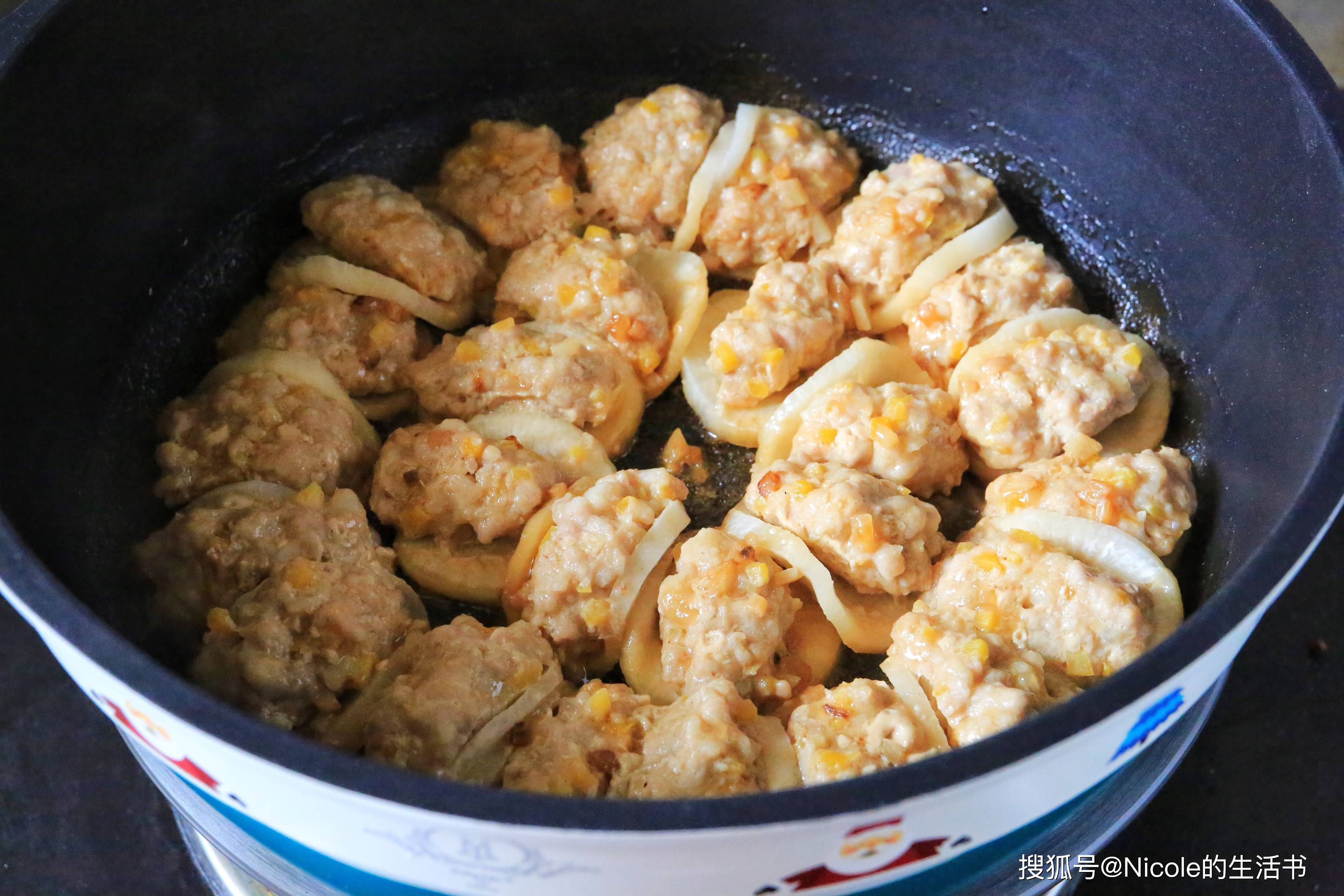 12、酿好的萝卜整齐排在锅中;