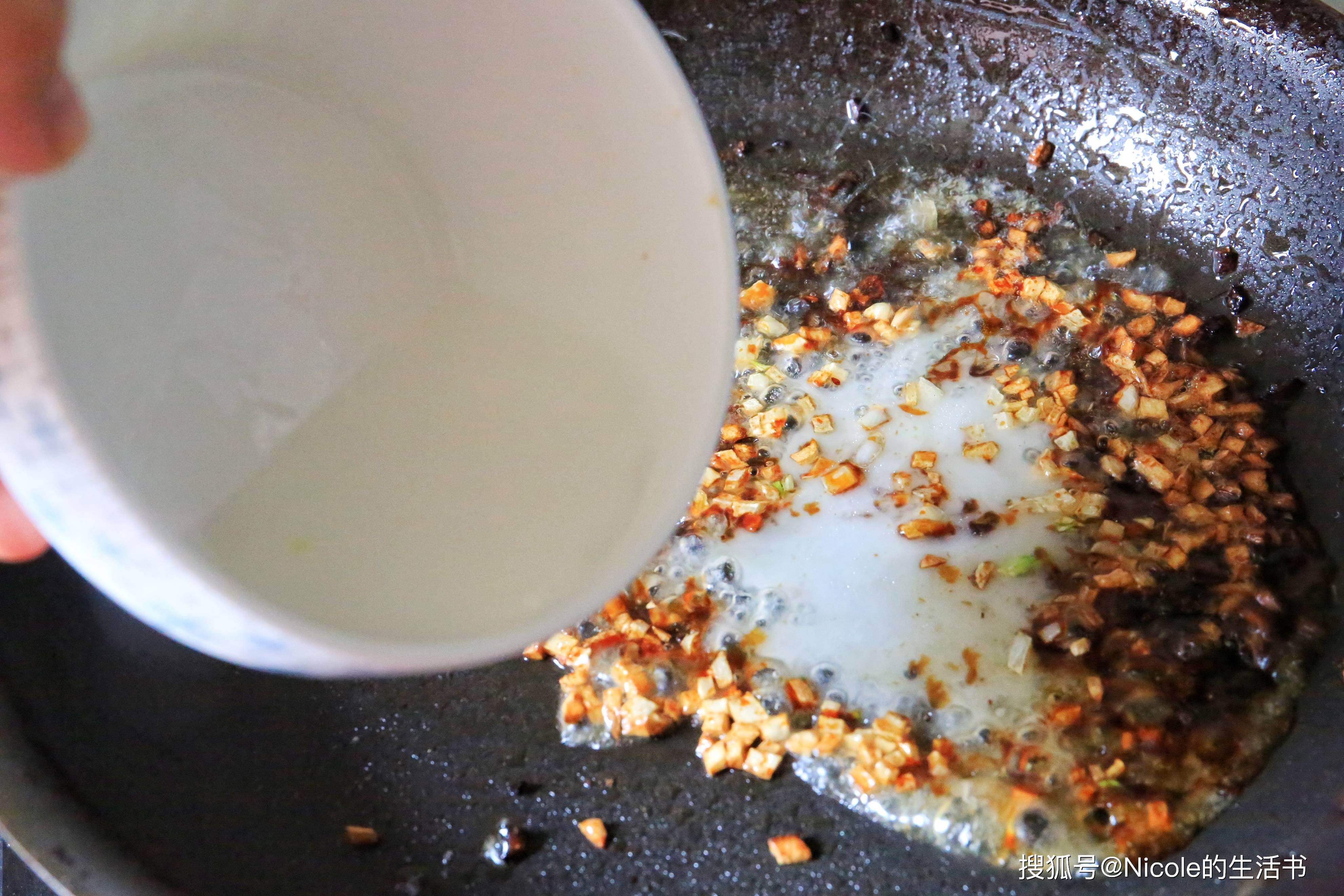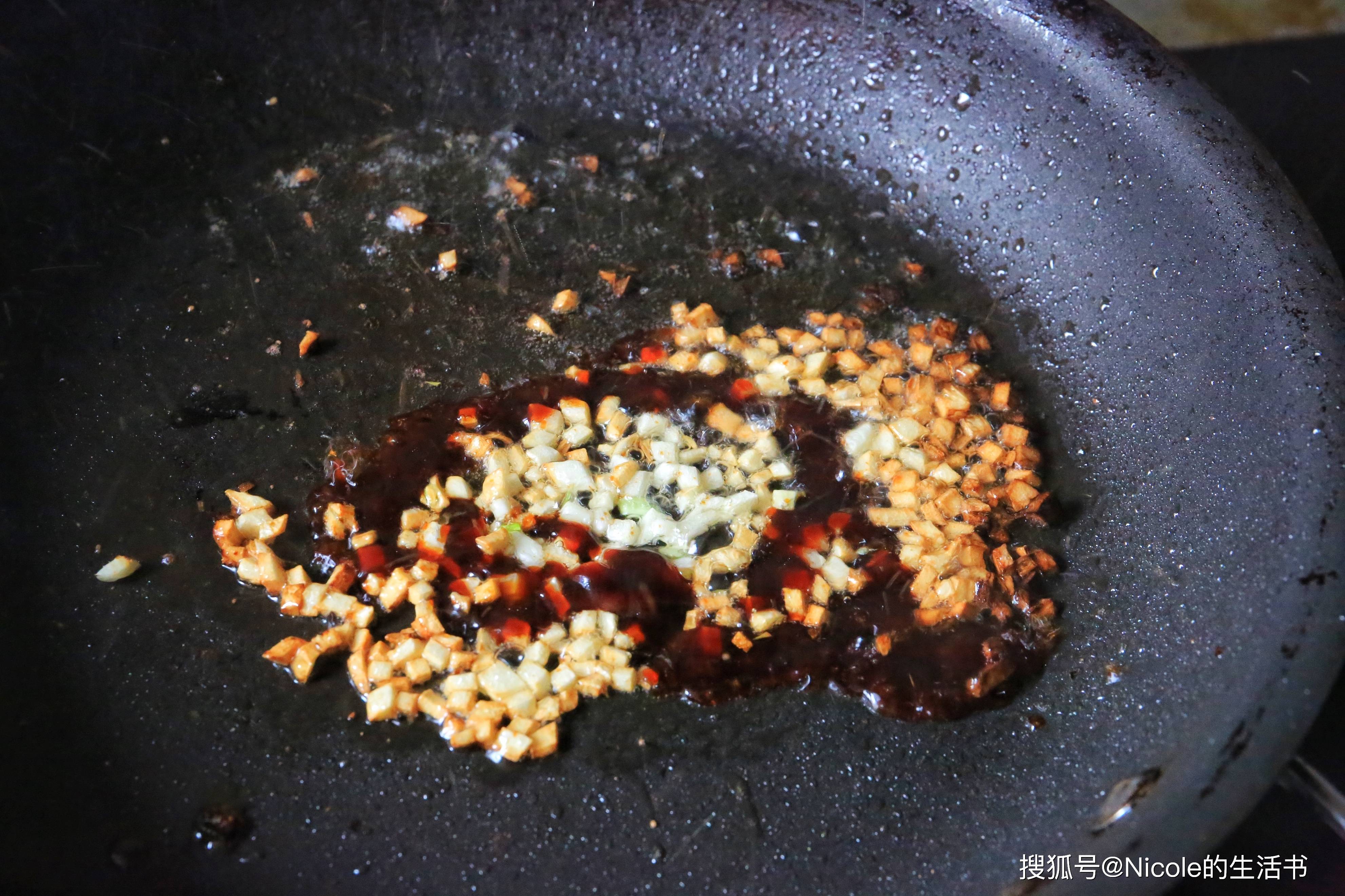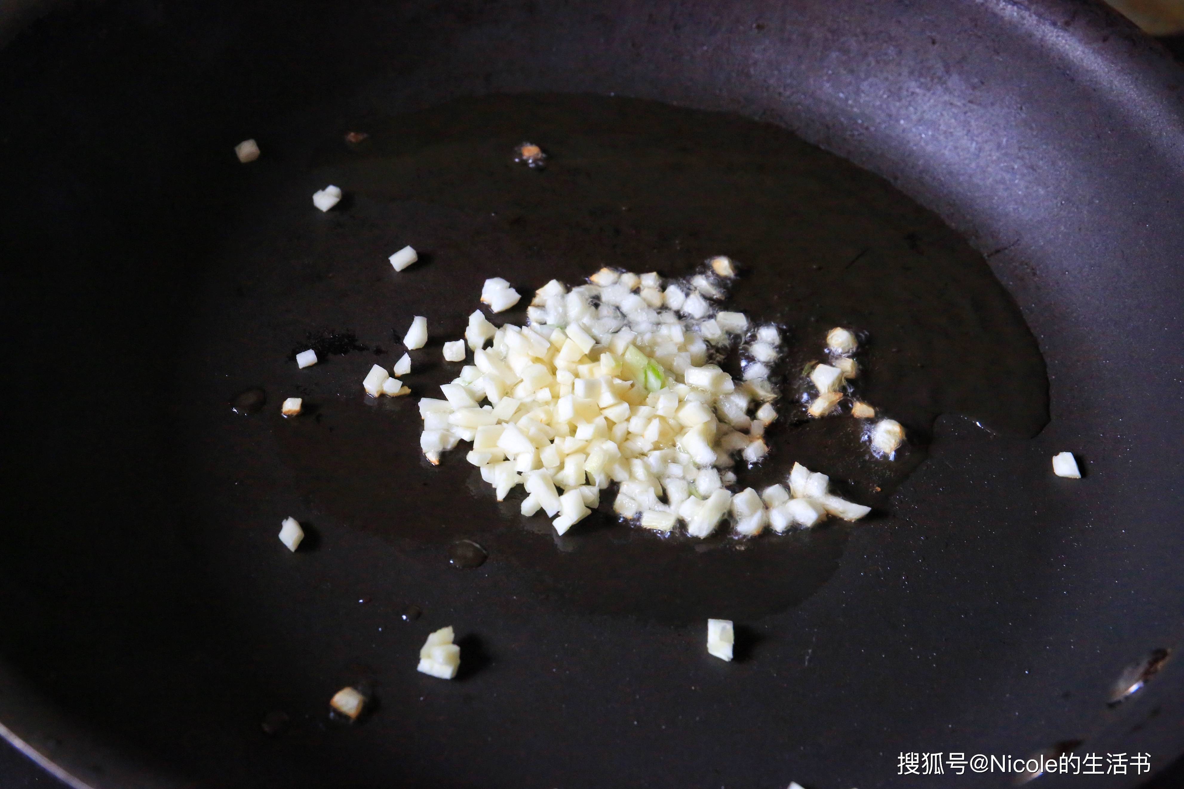 13、另起锅,加少许油烧热,放入蒜末爆香;