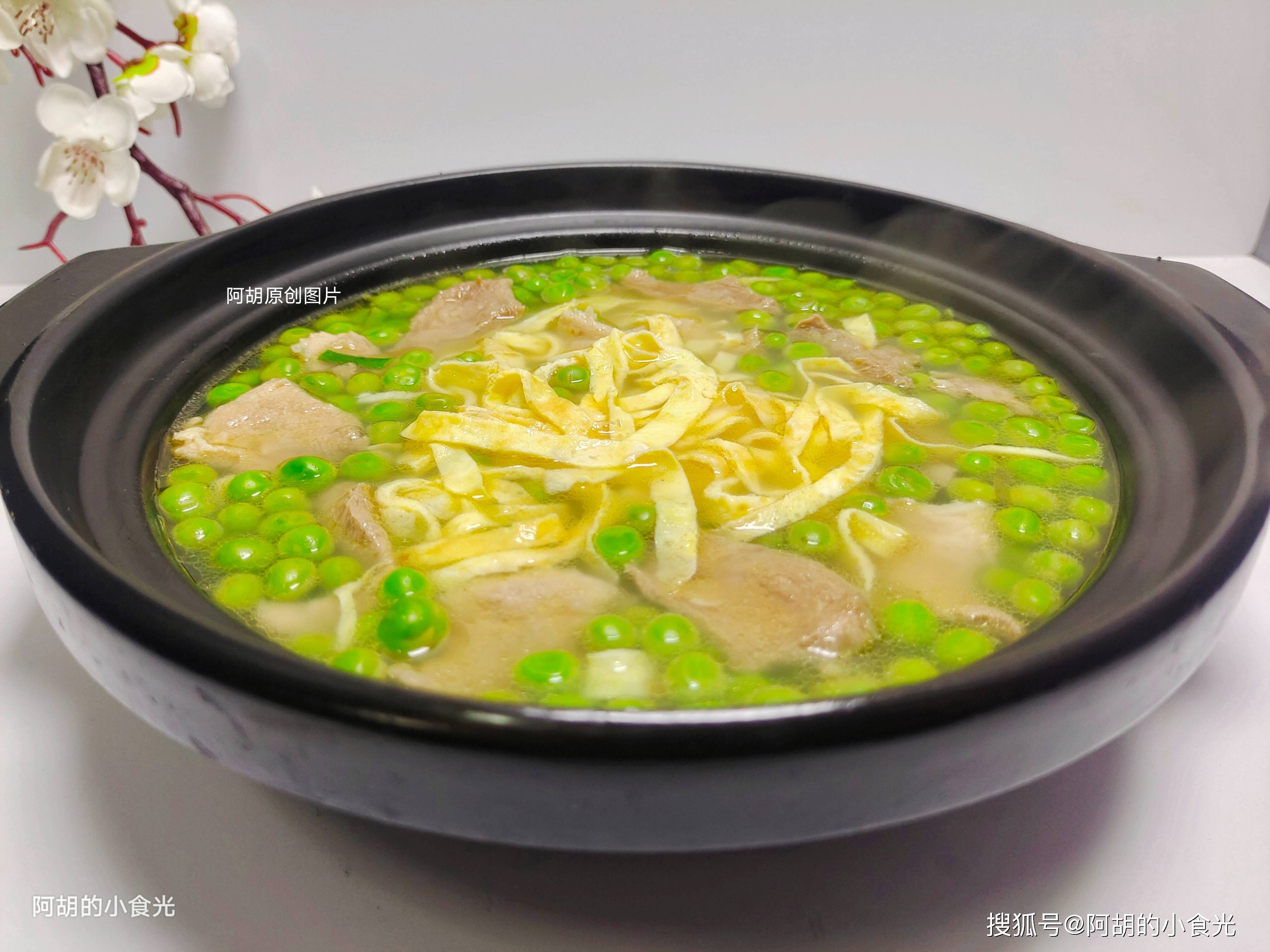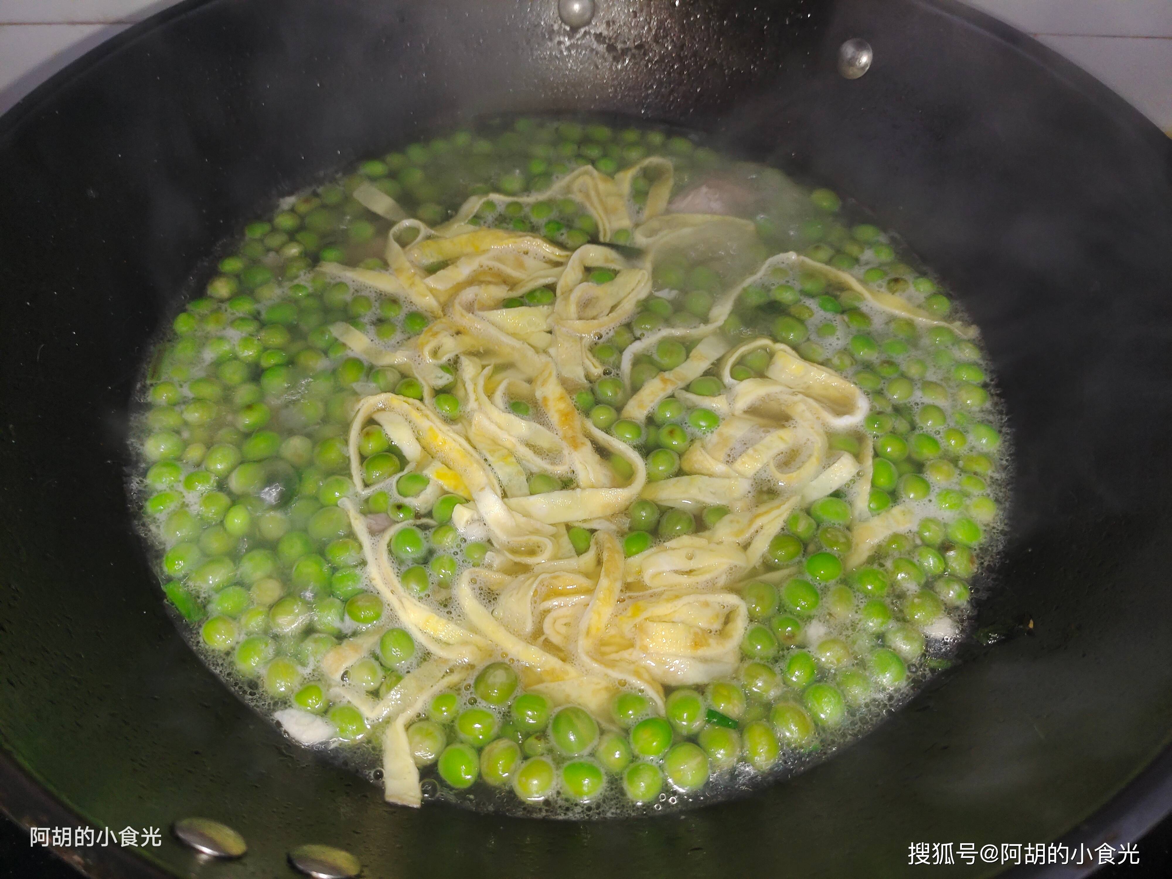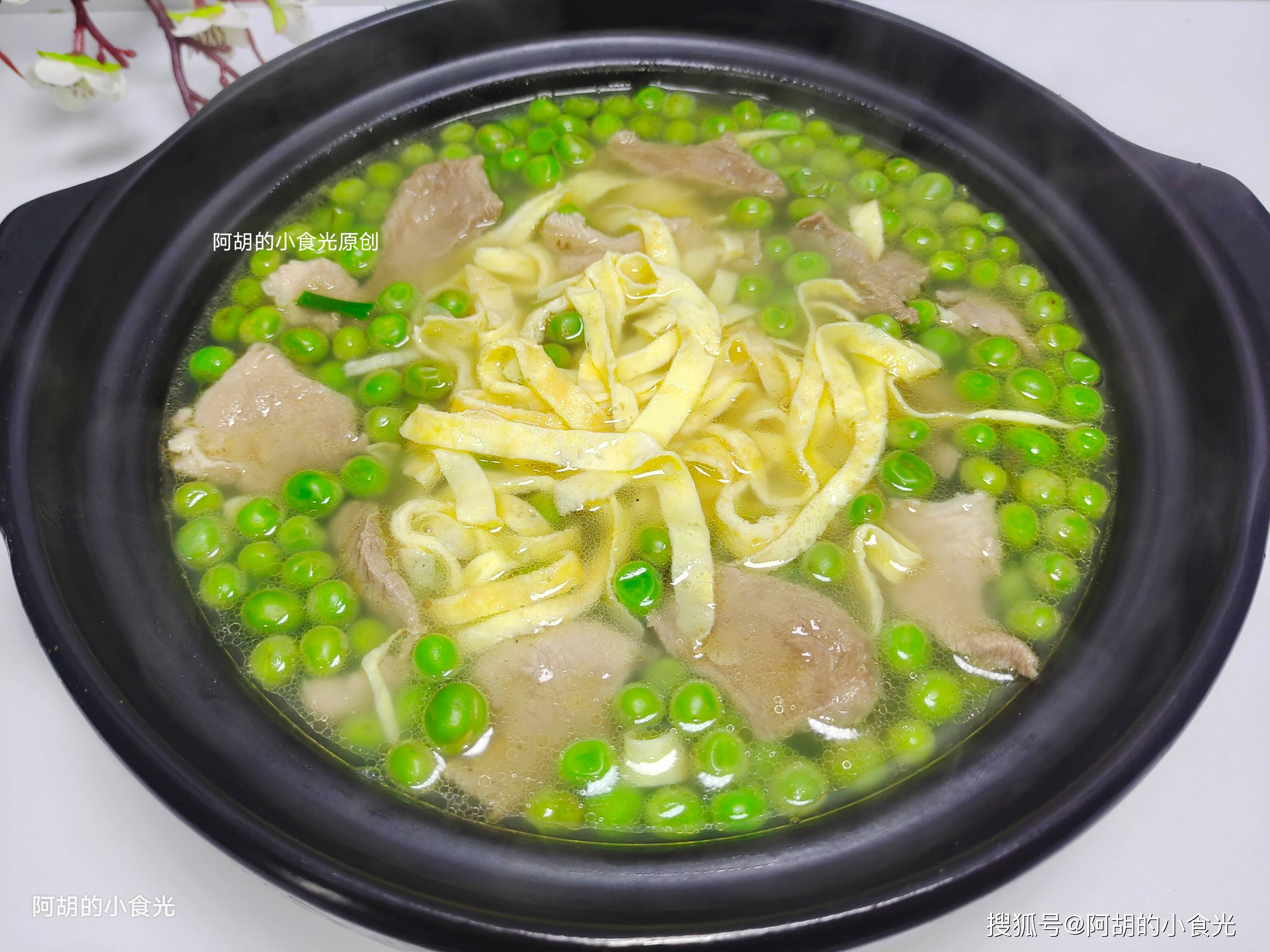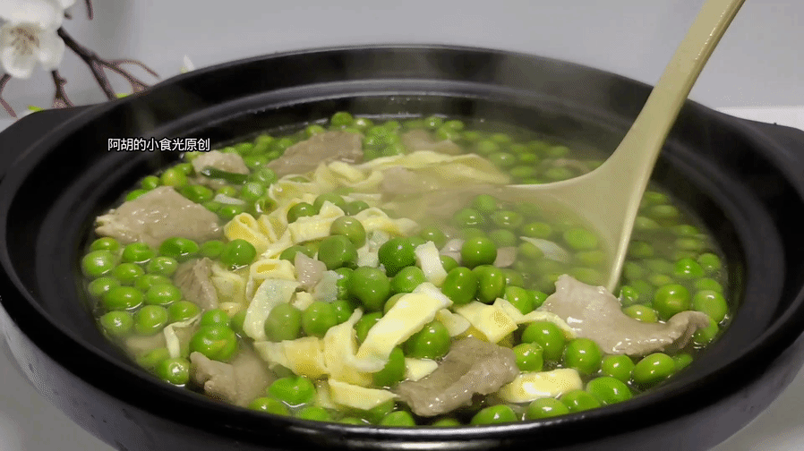 食材除了豌豆,还有鸡蛋皮和瘦肉片,就用这3样简单地煮一煮,出锅就是极致的鲜美,豌豆还保留着脆甜滋味,和鲜嫩的肉片、汤汁、蛋皮一块入口,越嚼越有好滋味,饭前来一碗瞬间就帮助打开好胃口,值得试一试。