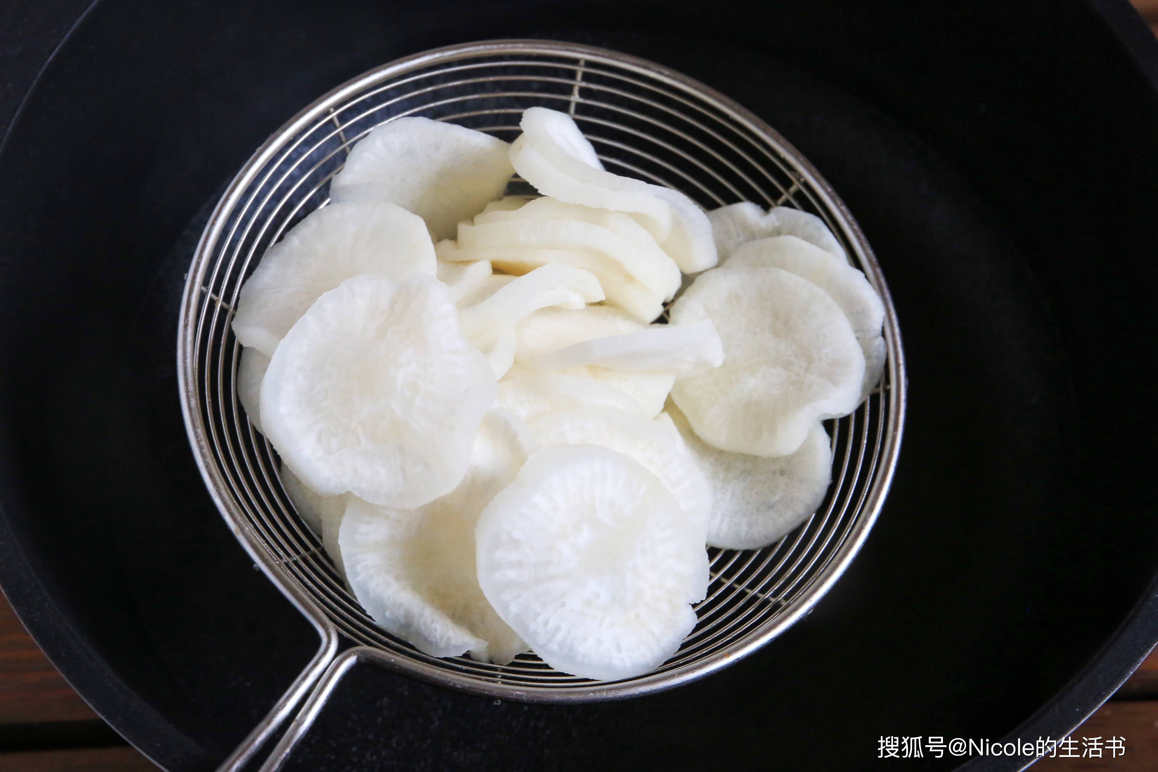 10、捞出萝卜片,沥干水分;