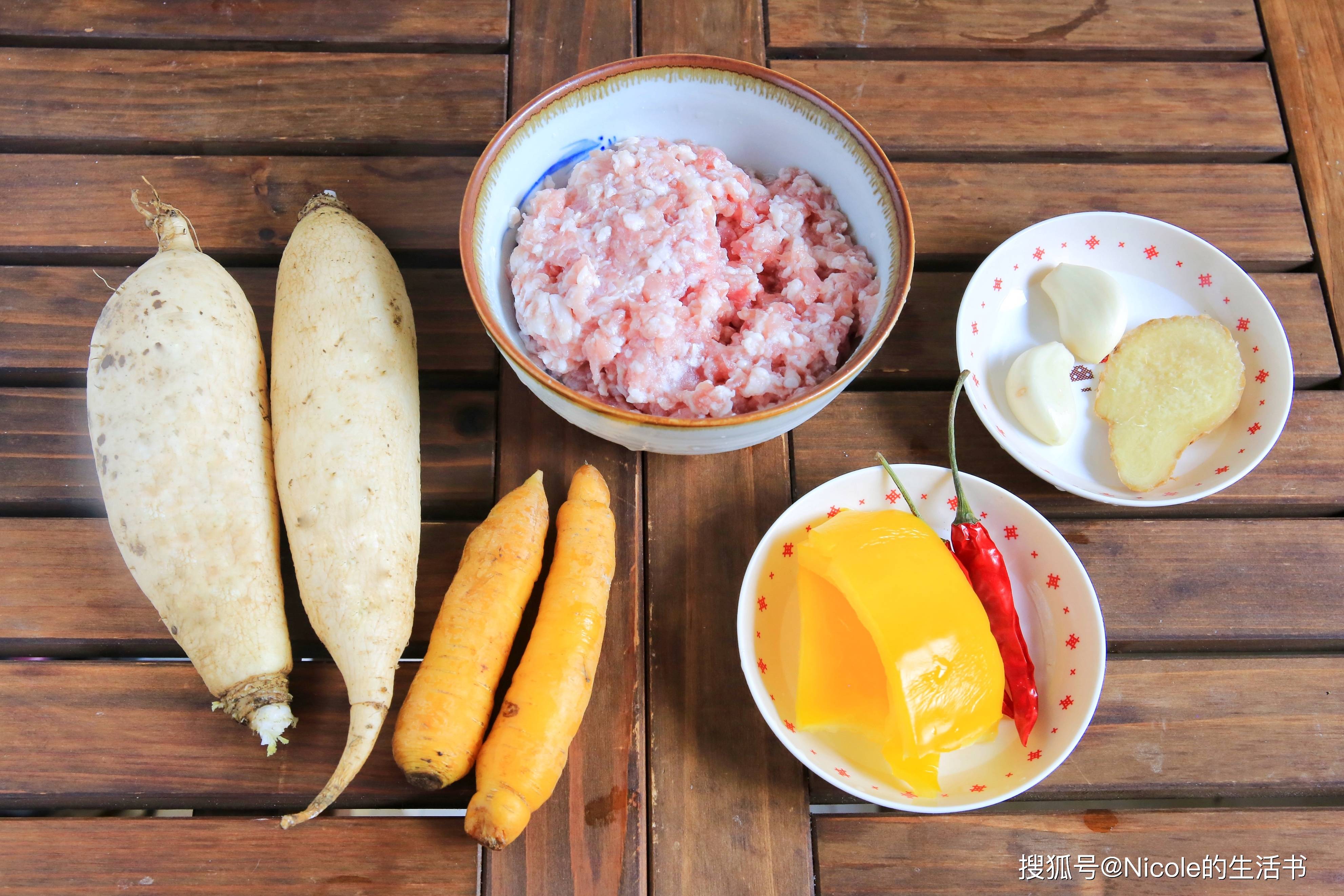 主料:白萝卜2个、肉馅200g