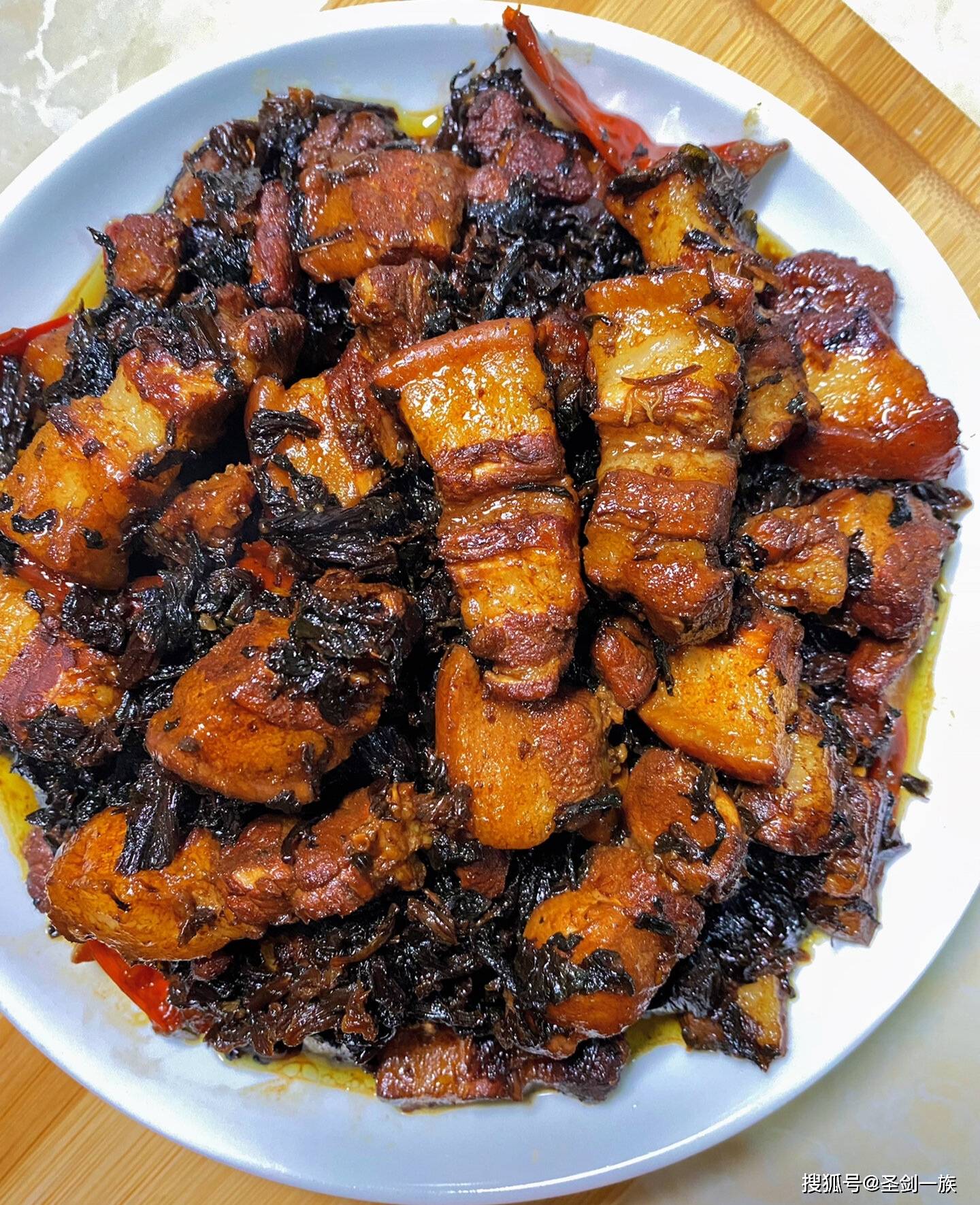1. 梅干菜泡发洗净,切碎。五花肉切块,焯水捞出。