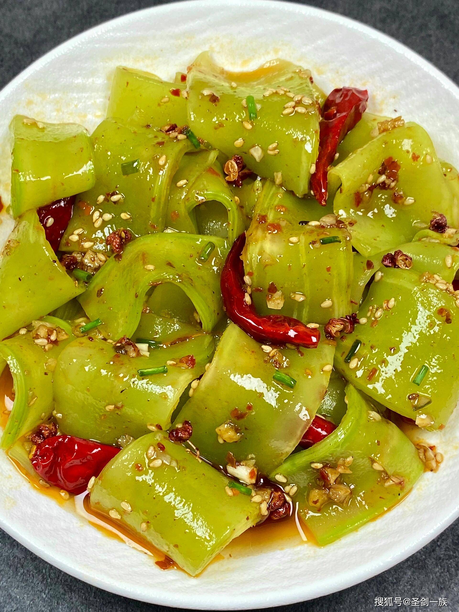 3、莴笋装入盘中,撒上葱段,再淋上刚刚煮好的料汁,搅拌均匀即可端上桌开吃了。