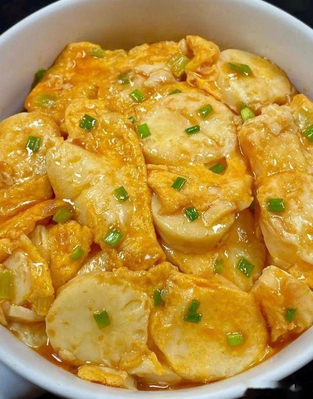 鸡蛋4个、蟹柳200克、生抽2勺、蚝油1勺、辣椒粉1勺、香醋半勺、盐半勺、白糖1勺、淀粉1勺、葱花适量