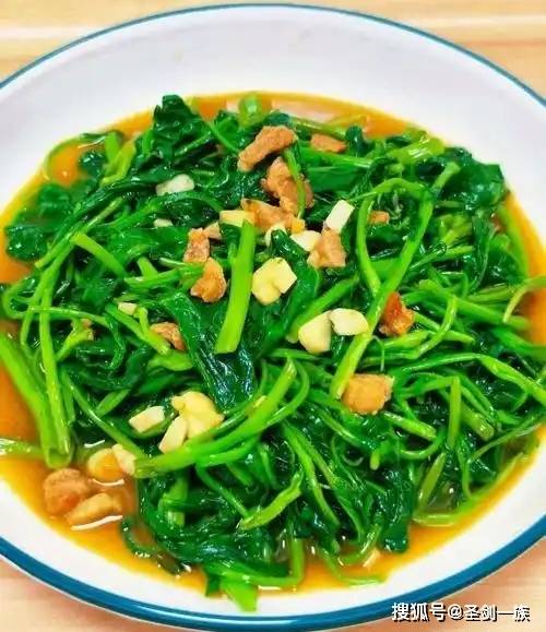 1. 空心菜洗净,去掉老根和黄叶,切成段,蒜末提前备好。