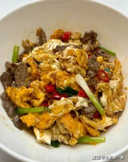 7. 最后尝一下味道,根据自己的口味加少许盐调味,翻炒1分钟就能出锅,牛肉嫩、鸡蛋香,超下饭!