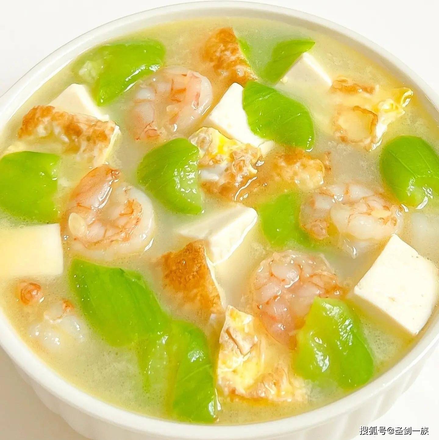 丝瓜、虾仁、豆腐、鸡蛋、姜、盐