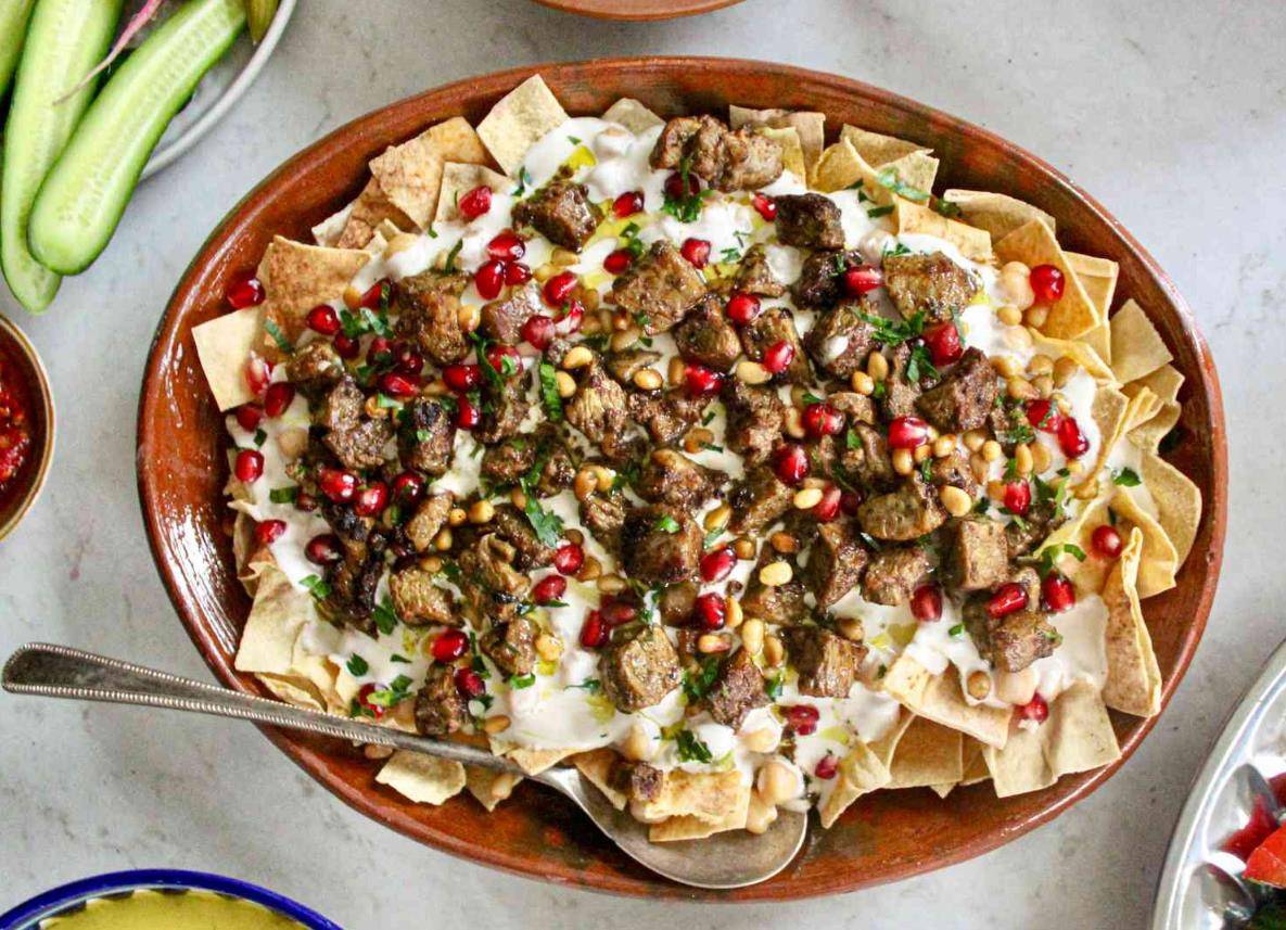 如果你想要一顿丰盛的早午餐,“Hummus Fatteh”会是你的选择:温热的鹰嘴豆泥打底,铺上酥脆的烤皮塔饼碎、黄油般绵软的松子,有时还有几块煎得焦香的羊肉。