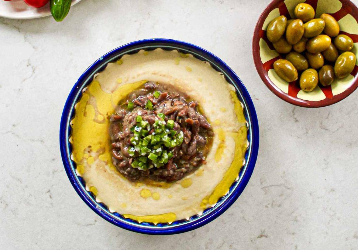 在耶路撒冷,鹰嘴豆泥有着“千种风情”。比如“Msabaha”,它把温热的整颗鹰嘴豆在芝麻酱、柠檬汁和大蒜调成的酱汁中徜徉,口感层次分明 。