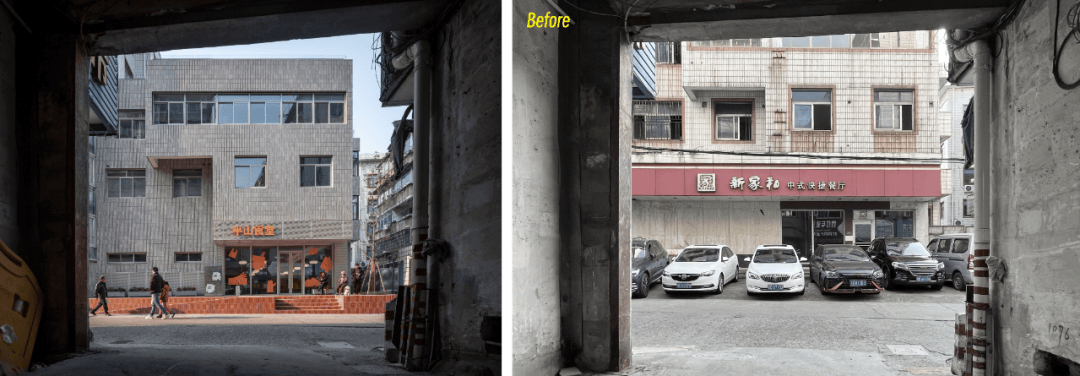 ▲(左)从老小区的过道看向半山食堂 ©吴清山 (右)改造前