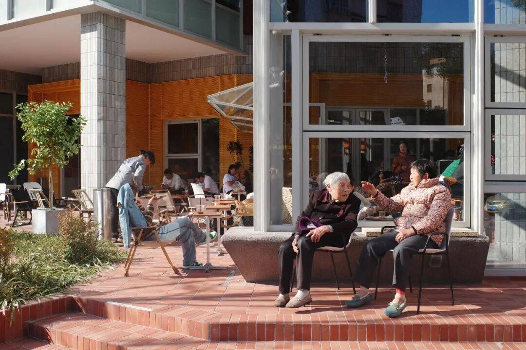 ▲一层城市客厅中歇坐的周边社区老人 ©赵赛
