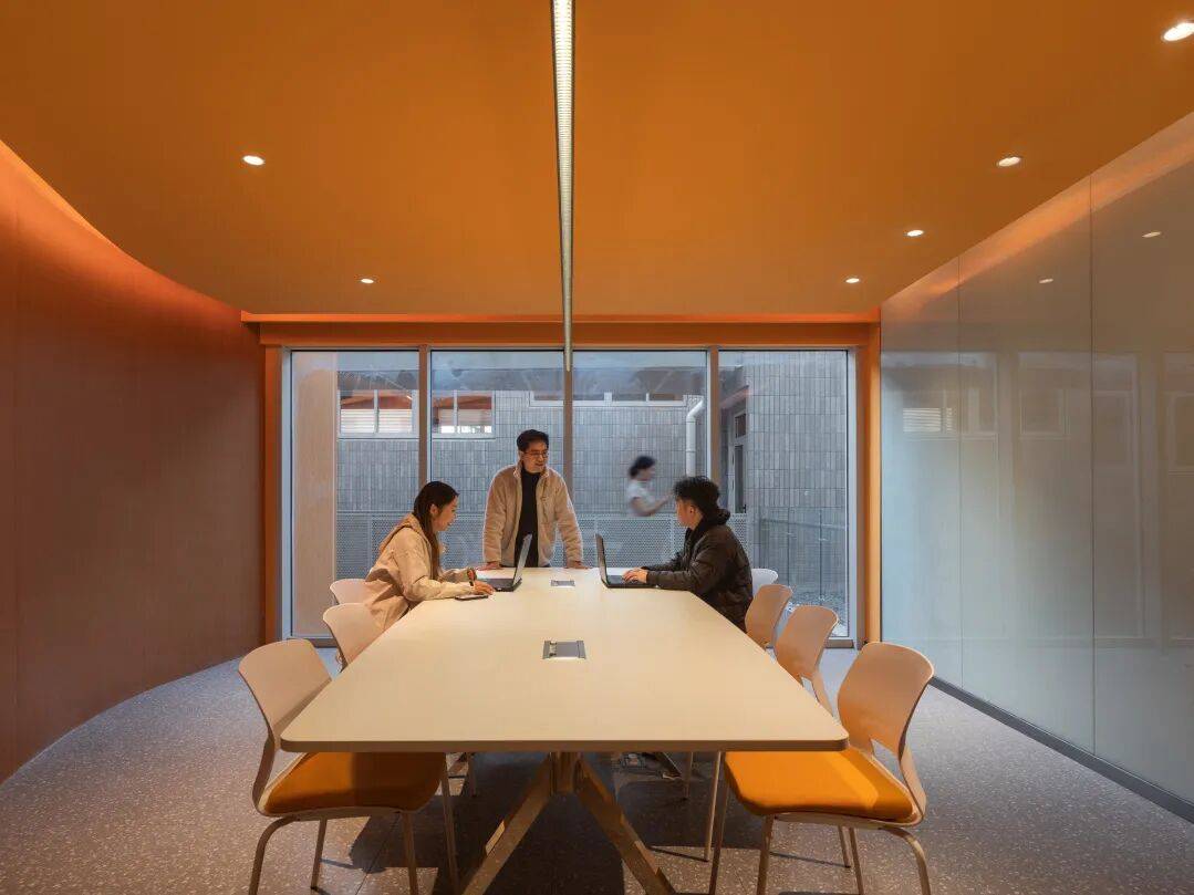 这里创造了一种同时身处多个空间的感受,或者是身处某个空间时还可以感受到多个相邻空间的状态。这些都是非线性的室内空间组织带来的体验“溢价”。曾有同行来访时说,这是"没有园林要素,却有园林体验的空间",是一种将对园林的视觉要素全部瓦解为日常功能并重构的结果。