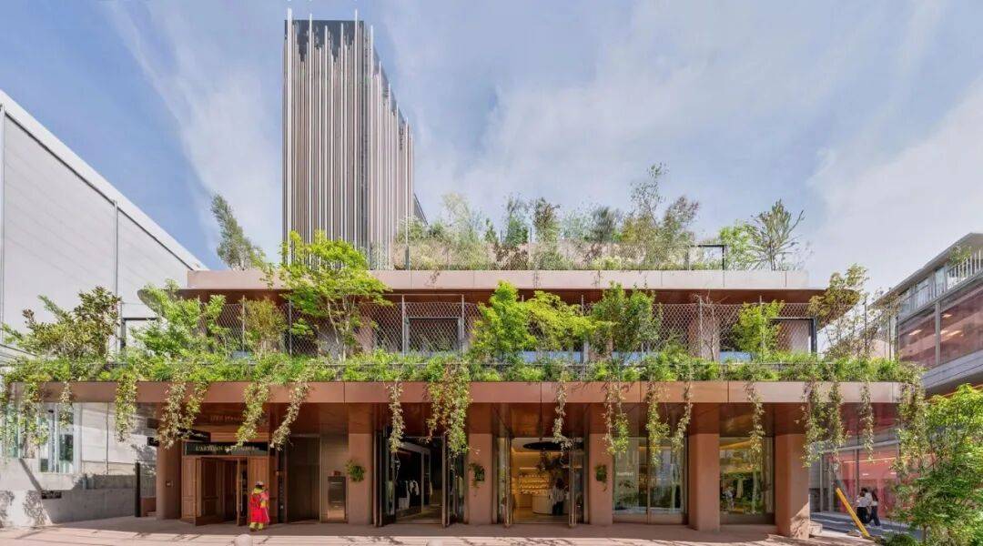 位于东京表参道的GREEN TERRACE表参道(2024年完工)由土屋毅建筑事务所设计,前身为深受居民喜爱的绿色空间“蜡笔屋”。项目以“城市绿意与建筑共生”为理念,将原址的绿意转化为立体绿色综合体,建筑面积涵盖地下一层至地上四层,集商业、公共空间与生态展示于一体。