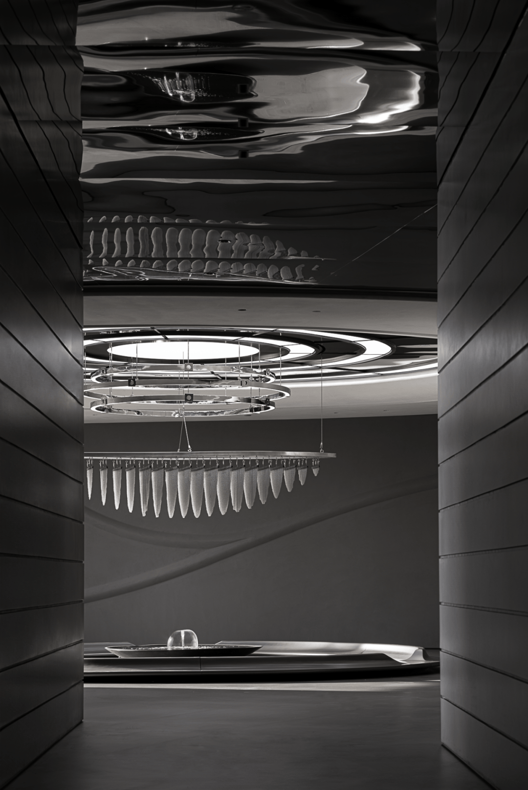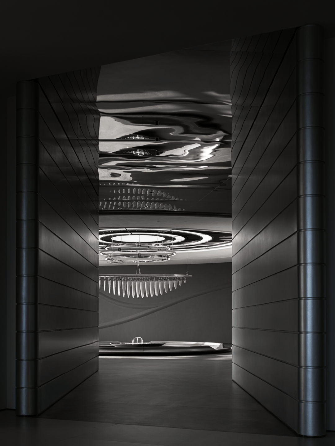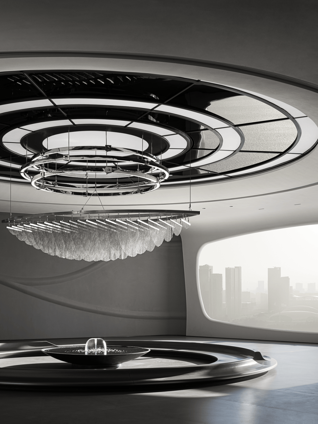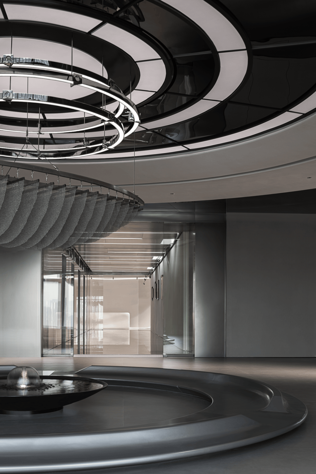 设计团队以"液态建筑"为核心理念,通过水的流动性重构空间逻辑: