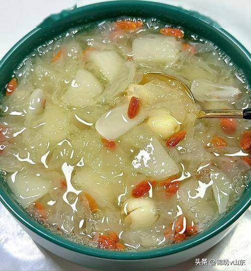 5. 加入黄冰糖、枸杞,继续小火炖10分钟,糖完全融化即可关火。