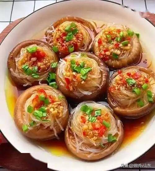 蒜蓉粉丝蒸香菇:蒜香浓郁,粉丝爽滑