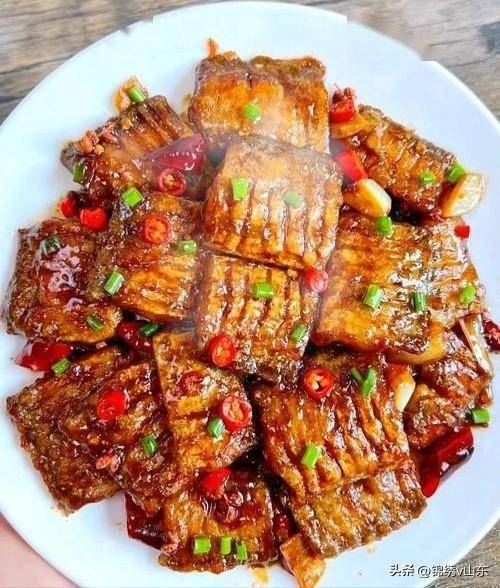 4. 收汁出锅:大火收汁,撒上蒜苗或香菜即可,带鱼外皮酥脆,内部鲜嫩,咸香滋味让人回味无穷。