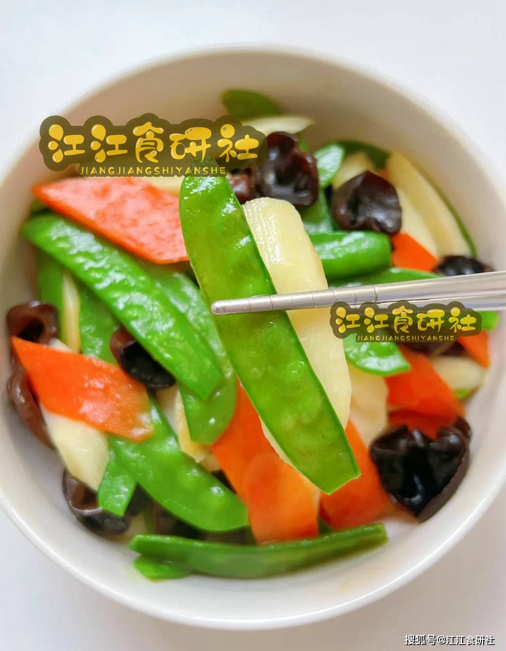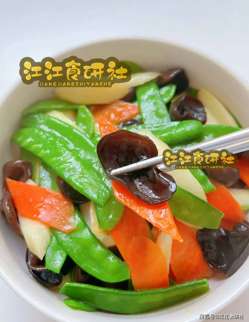 荷兰豆是春天的馈赠,清脆甘甜。木耳脆嫩,胡萝卜鲜甜亮眼。