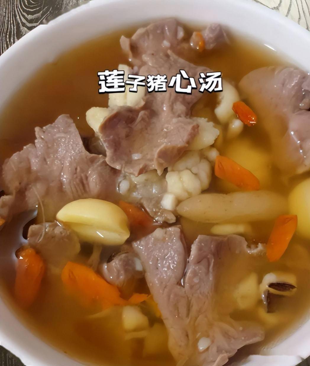 莲子猪心汤:莲子清心火、猪心补心血,搭配红枣、枸杞,安神又明目;