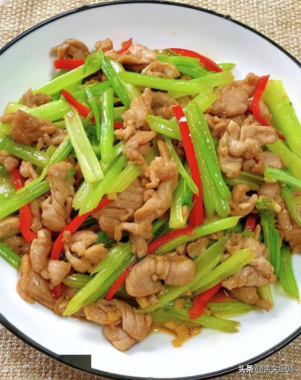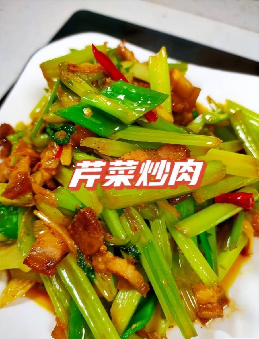 芹菜炒肉:芹菜富含维生素A(保护视网膜)、猪瘦肉提供优质蛋白,清肝又补虚;