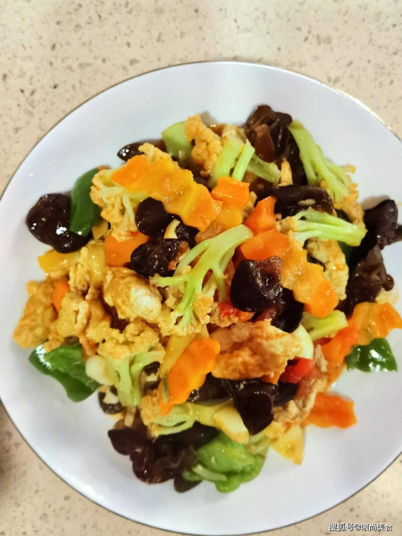 核心亮点:西红柿的酸甜与菜花的脆嫩结合,木耳增加口感层次,料汁提前调好,一锅成菜,适合快节奏家庭。