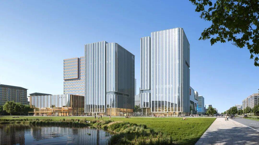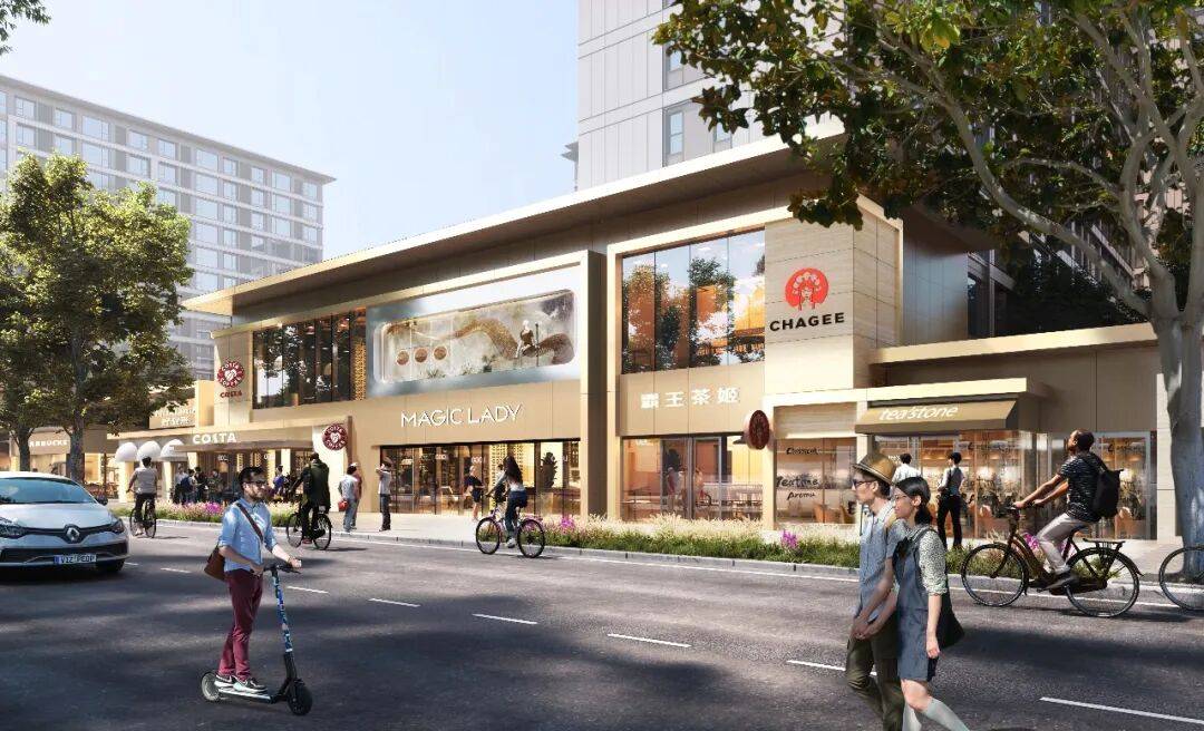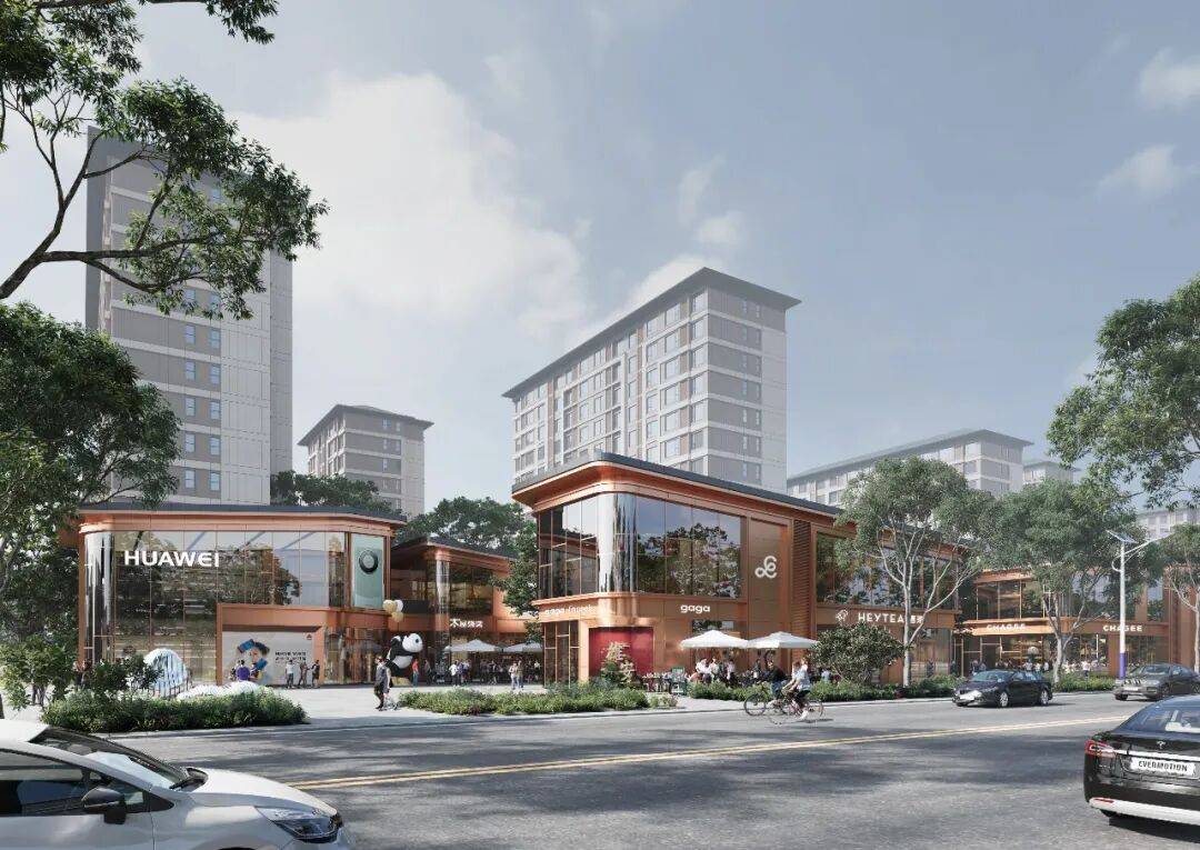 西纵地块以“鲤跃龙门”为概念,通过塔楼对称布局与流线型购物中心形成地标;东纵地块以“游园艺坊”为概念,通过街角广场与口袋公园营造中西结合的场所体验。