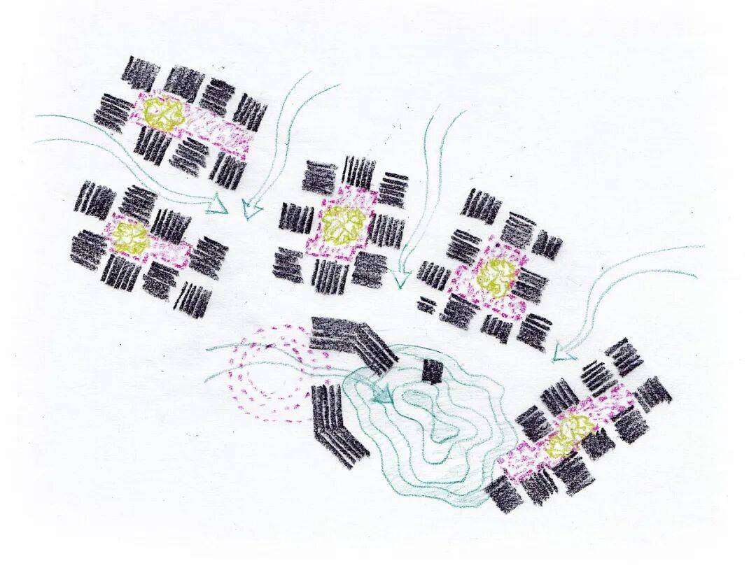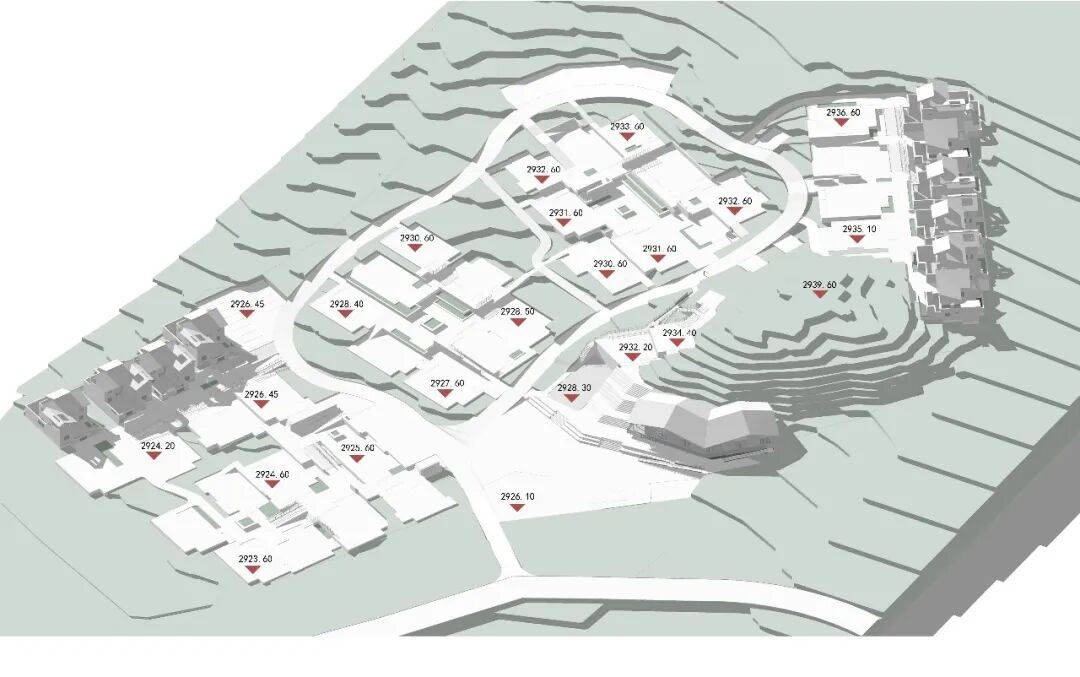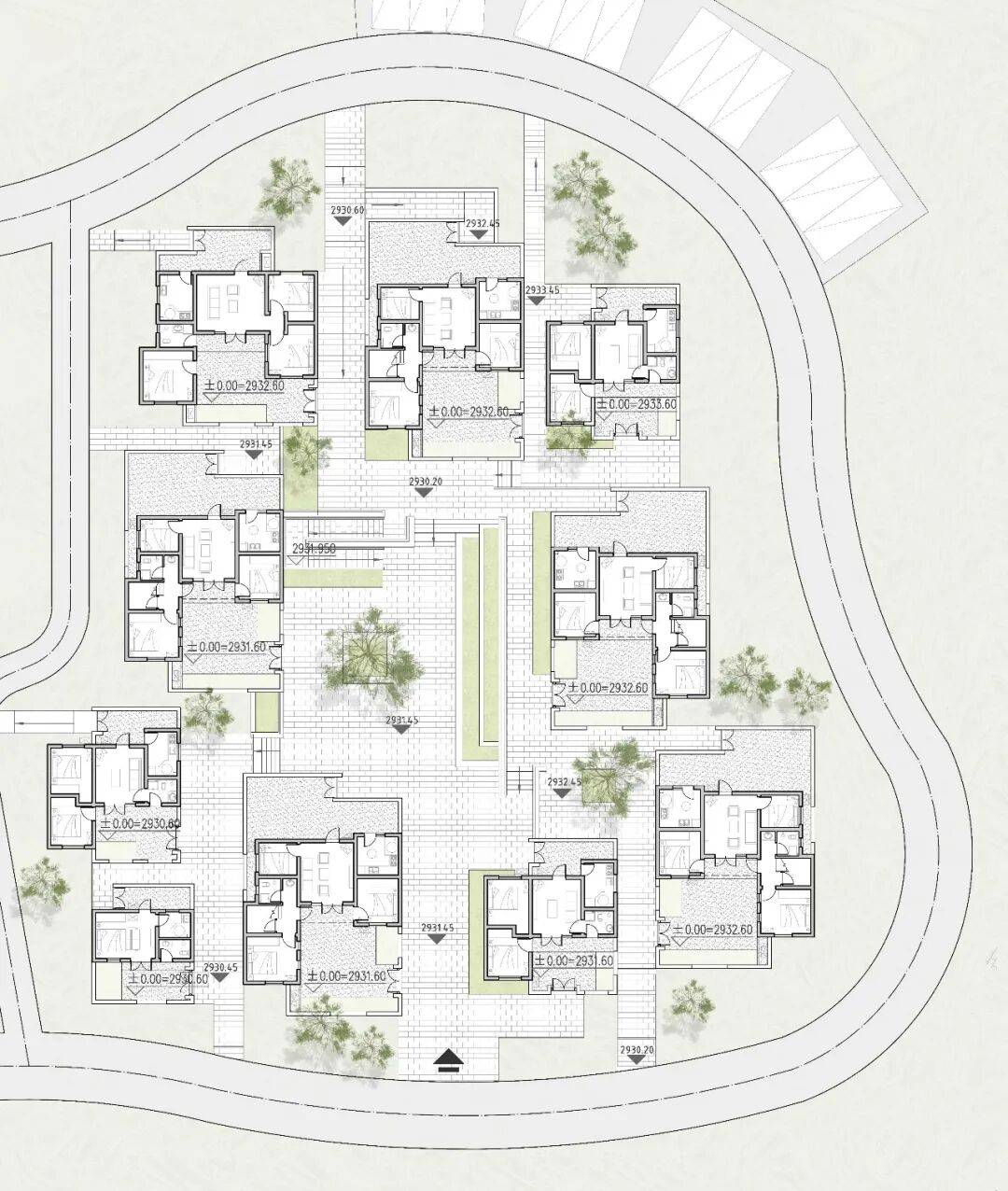 “一户一标高”的台地型住宅锚固于场地,构建积极的宅间公共空间,实现建筑与自然的融合。