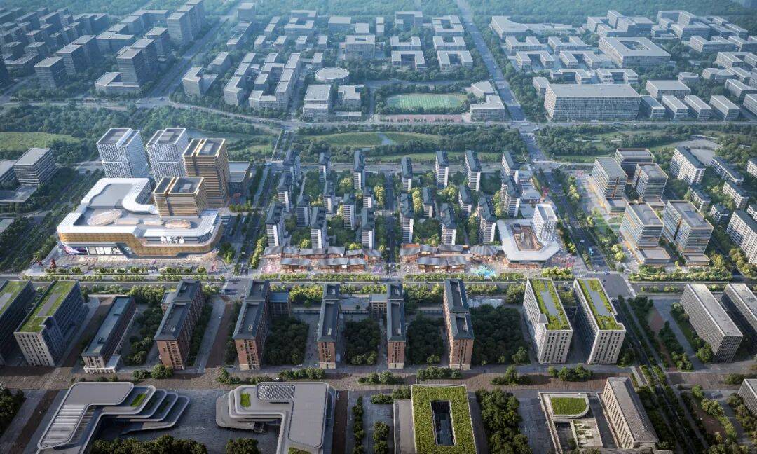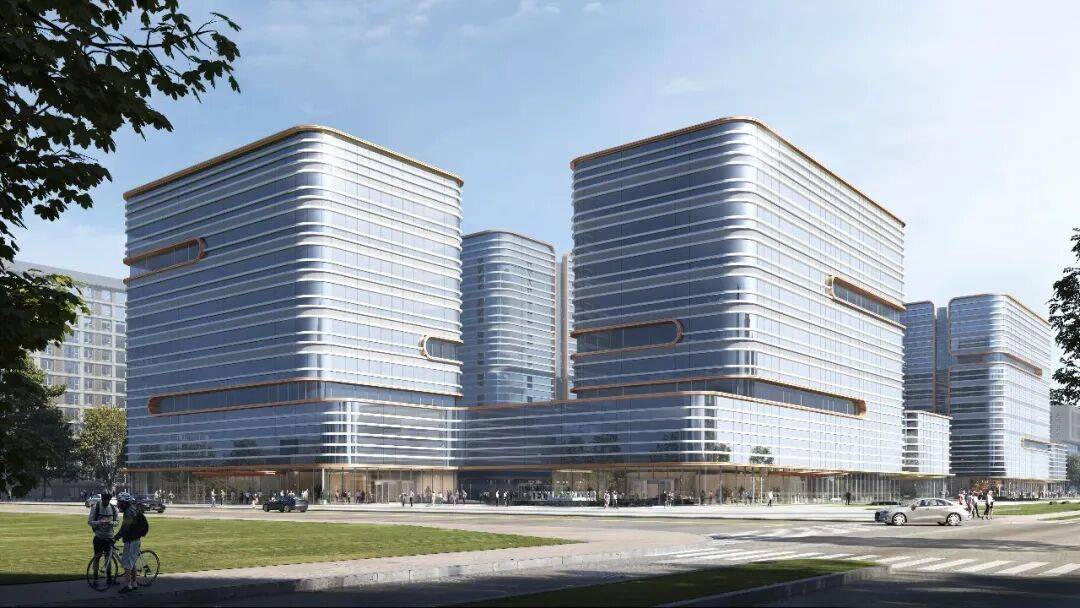 东纵地块以“游园艺坊”为概念,采用现代建筑语言演绎中国屋檐,赋予街区文艺韵味;酒店与商业沿主街呈现稳重大气形象,居住区融合商业活力与学术气息。