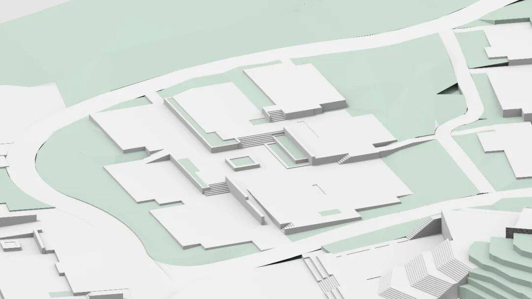 通过“地形微差调控+山丘存续润色”雕刻大地景观,保留场地中部小山丘并顺势营造社区文化中心与观景楼。