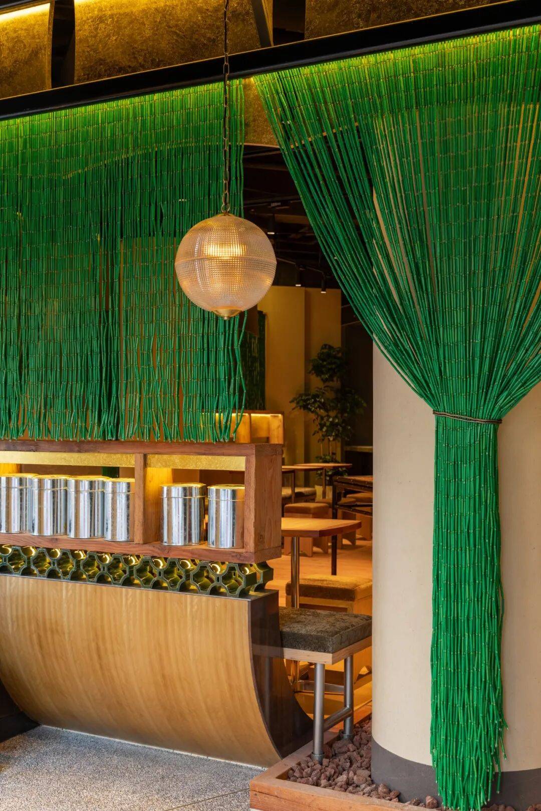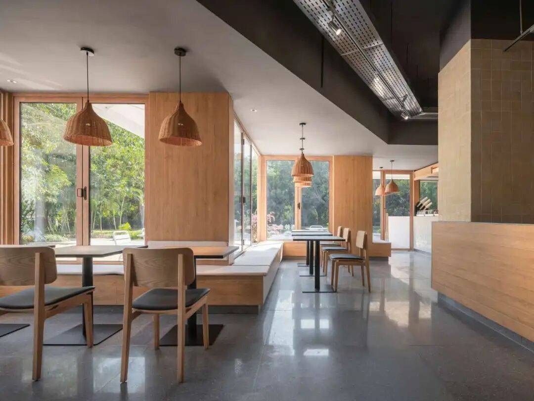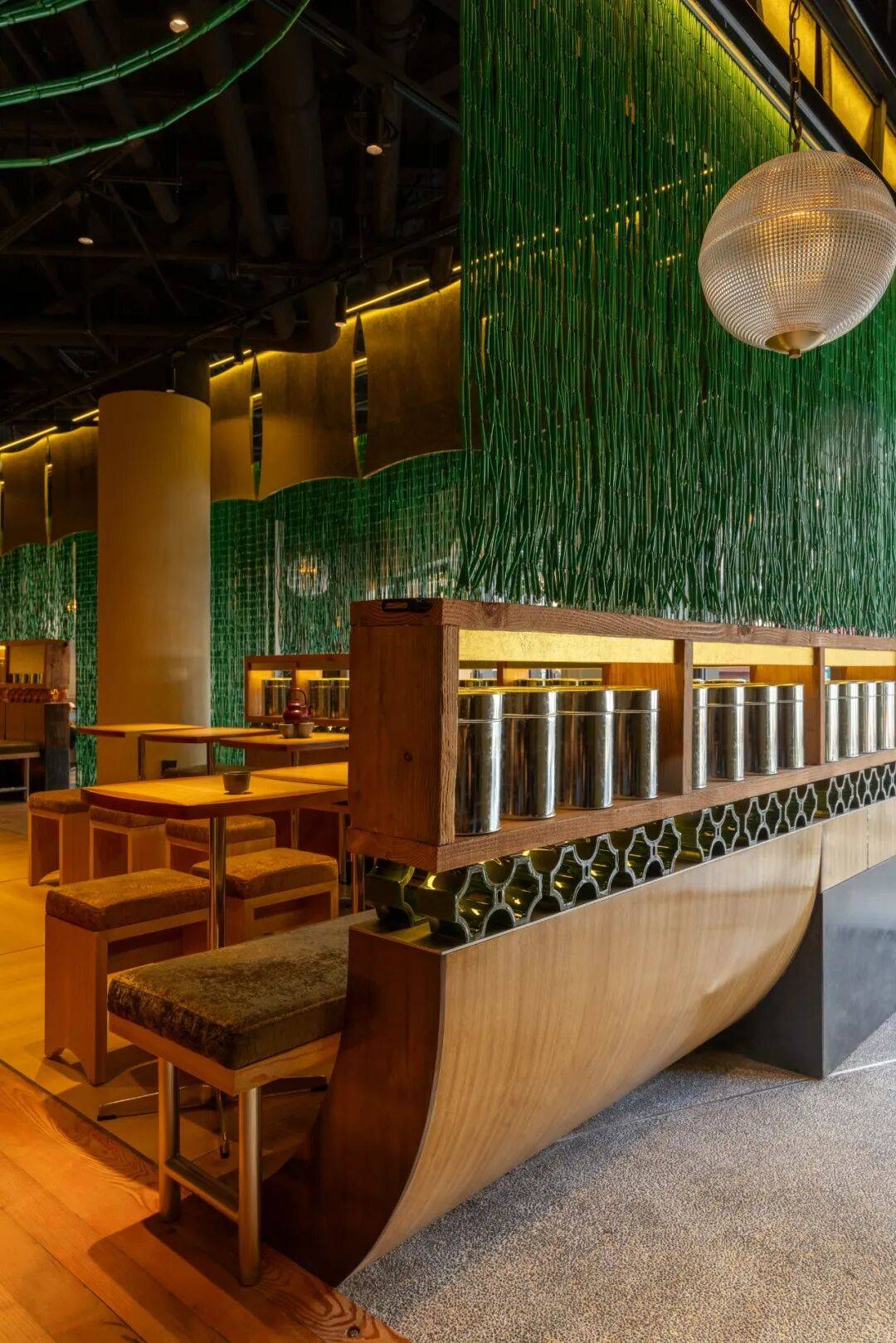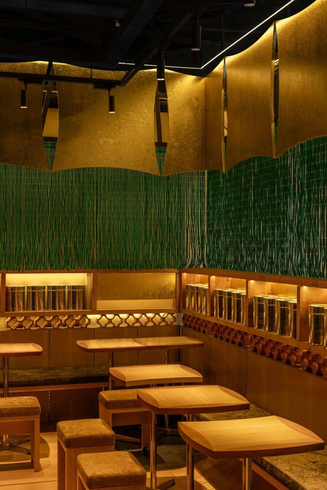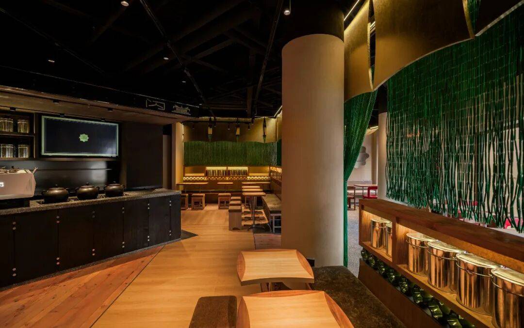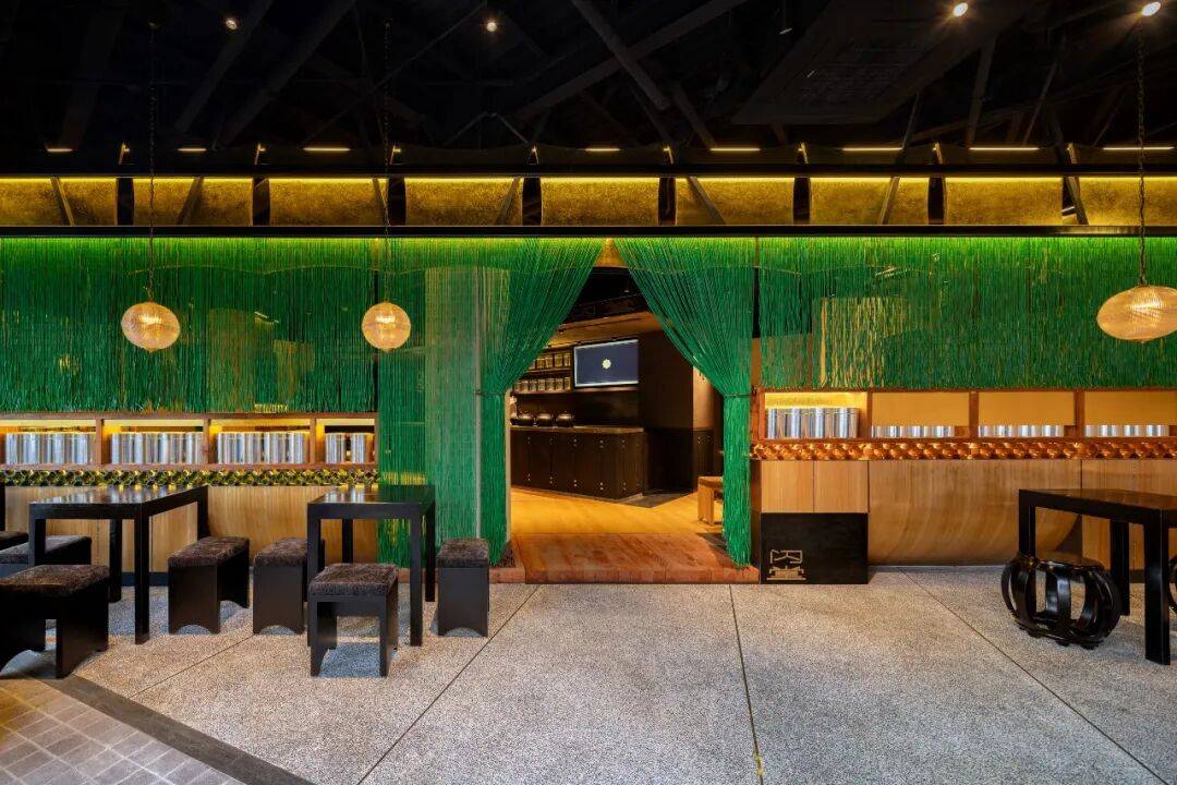 传统元素解构:通过几何切割、材质对比(如原木与金属)重构茶文化空间,打破传统茶室的封闭感,营造开放通透的当代美学场域。