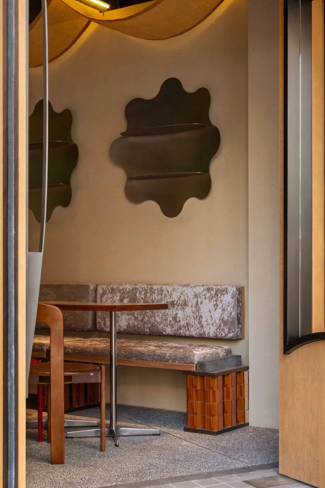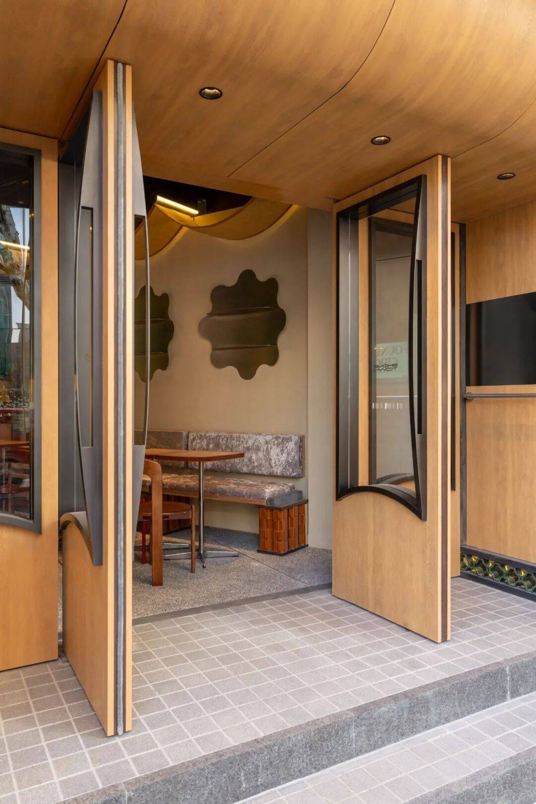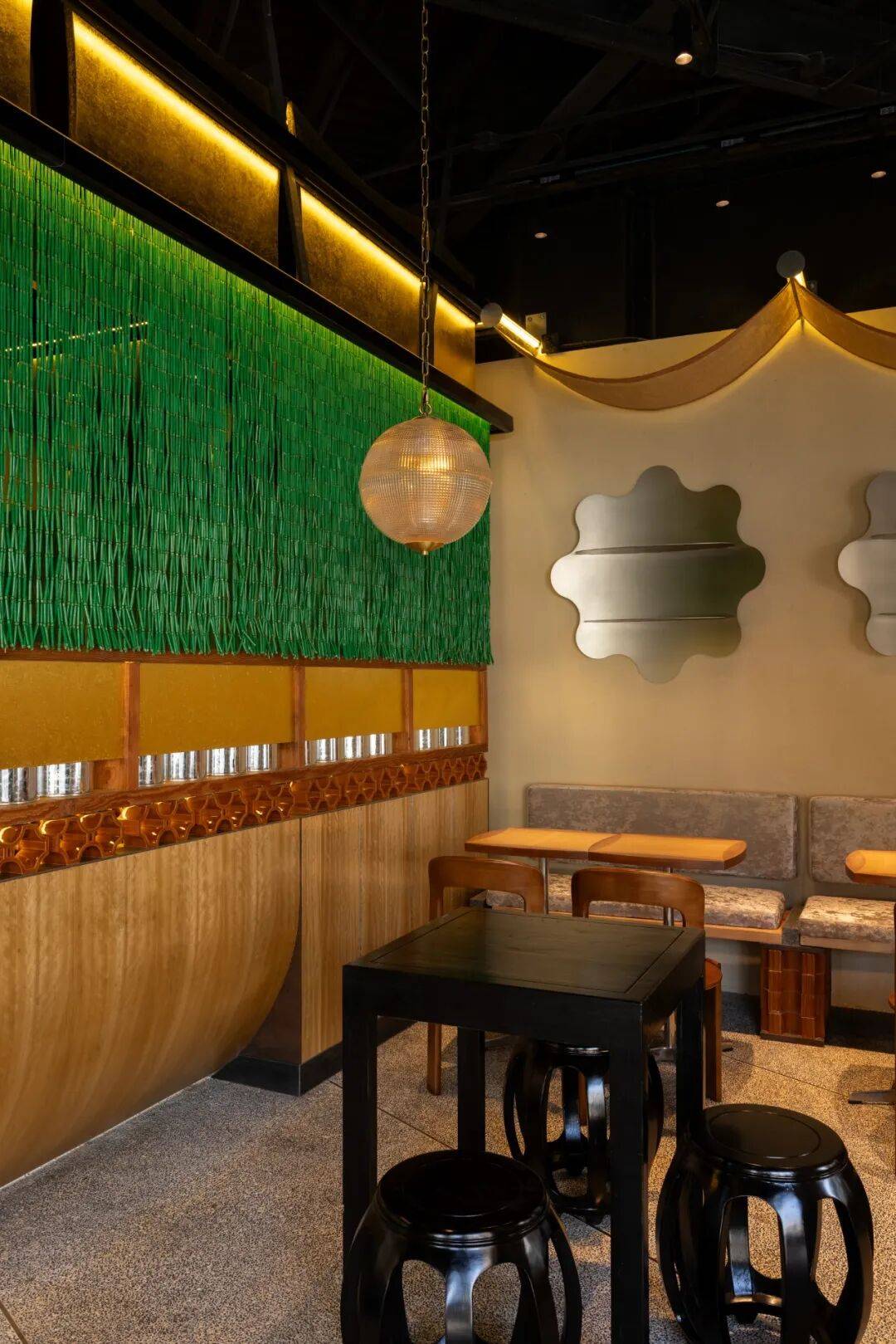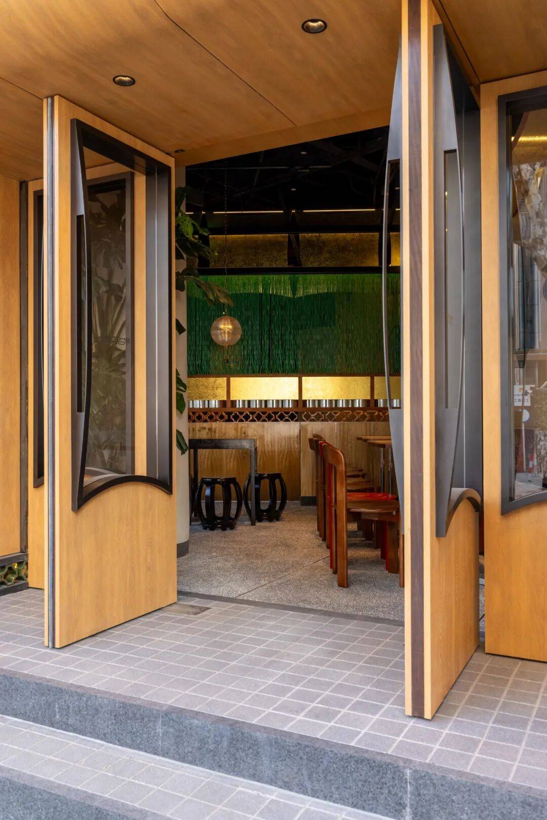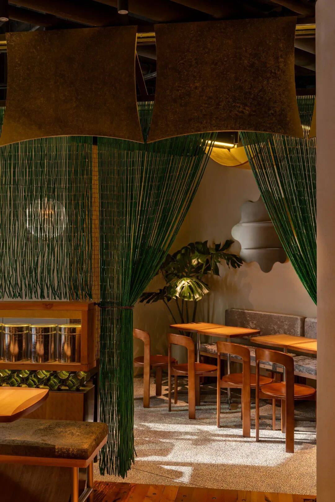传统元素解构:通过几何切割、材质对比(如原木与金属)重构茶文化空间,打破传统茶室的封闭感,营造开放通透的当代美学场域。