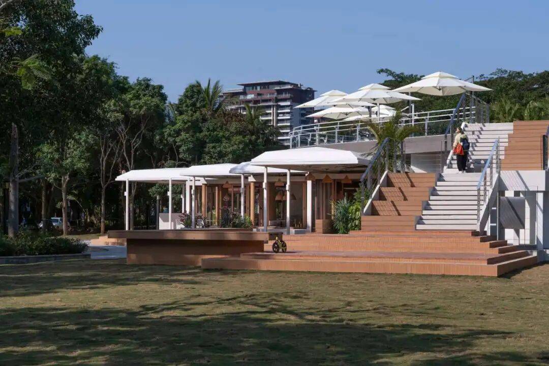 空间场景营造:结合热带植被与开放式布局,打造“可游可沉浸”的流动空间,市集区域汇聚岛上风物、非遗文创,形成轻量化文化交易平台。