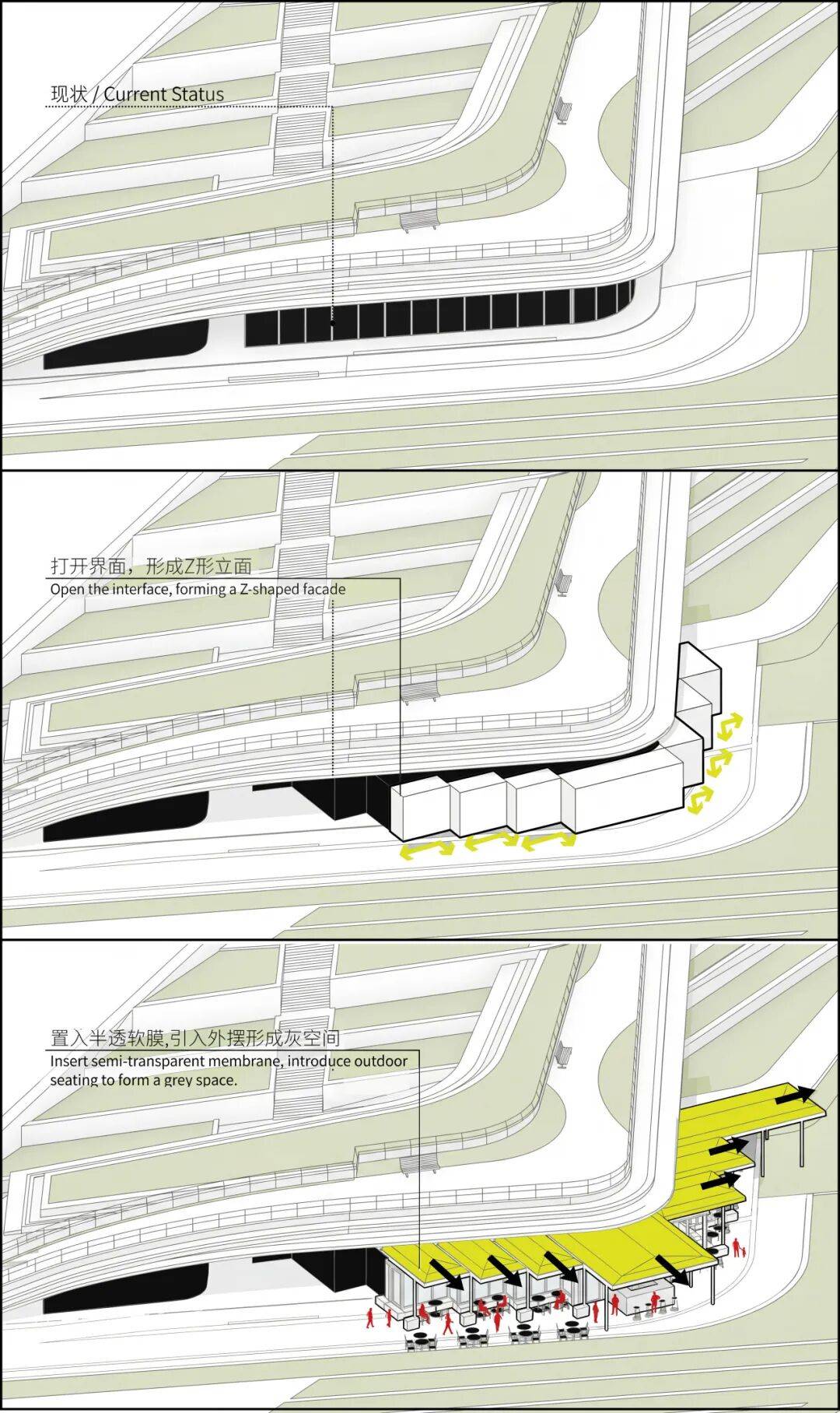 空间组织 开放式聚合(档口串联、节庆广场) 序列化递进(仪式动线、模块化分区)