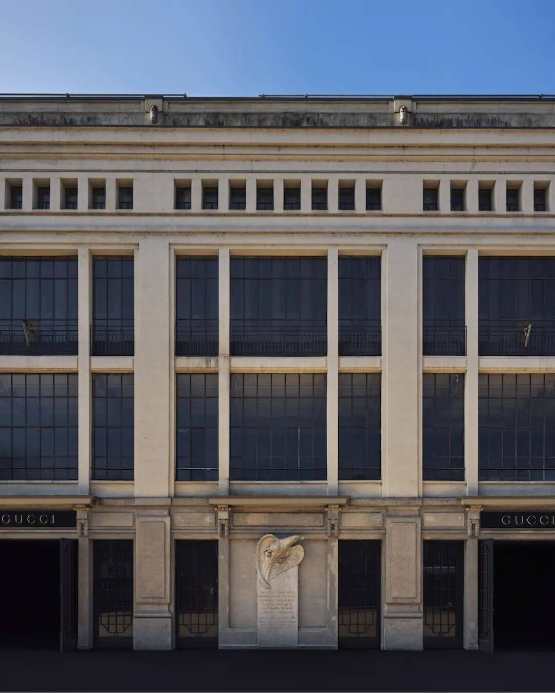 Demna执掌Gucci后的首场大秀选址米兰Palazzo delle Scintille。这座由建筑师Paolo Vietti-Violi于1923年设计的巨大室内竞技场,最初是用于场地自行车比赛的速度馆。历经战争损毁与数十年的功能更迭,这座建筑曾承载体育赛事、音乐演出与公共活动,如今成为米兰城市文化空间的一部分。