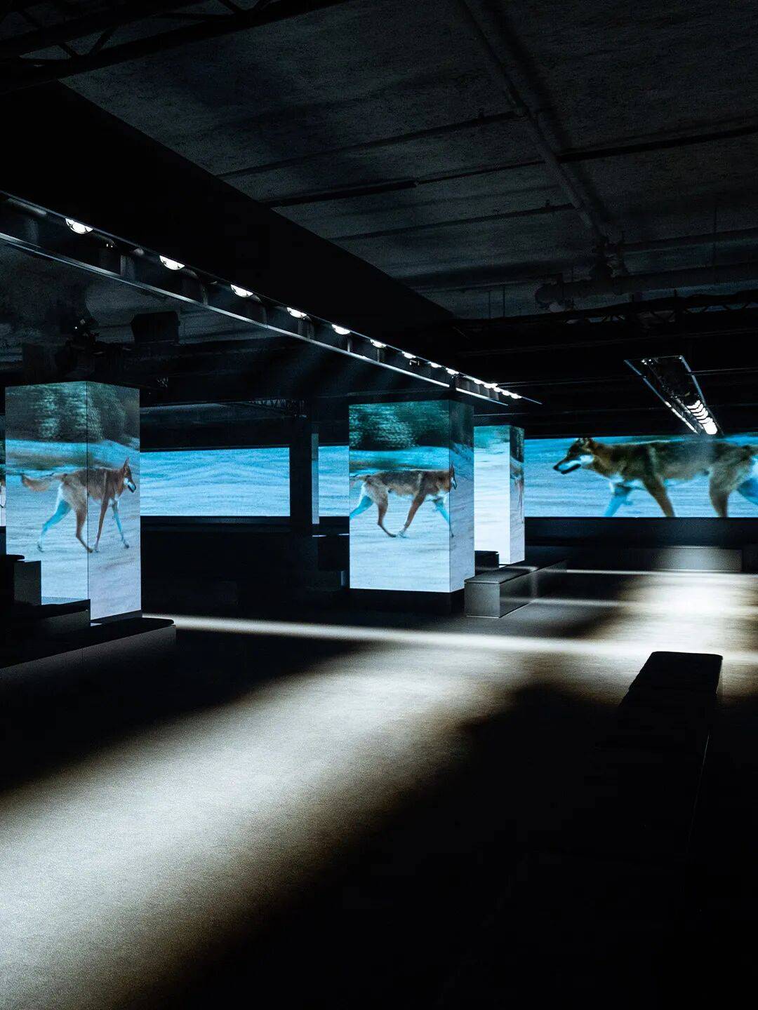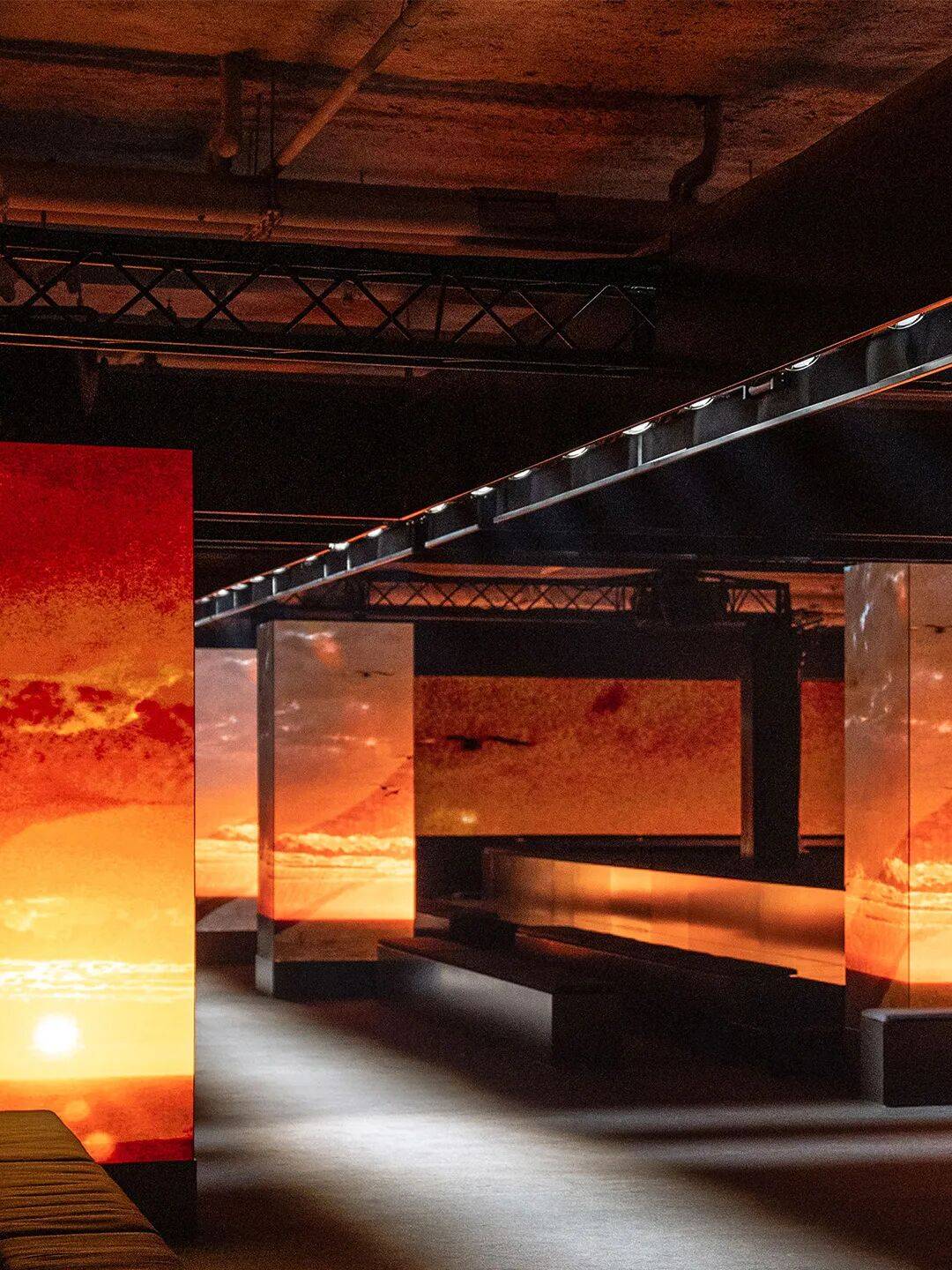 Prada    基金会仓库(打碎墙与地板,营造“考古现场”氛围)    将仓库改造为“悬疑且略带不安的林奇式空间”,用射灯、假门等装置模拟“尘封宝箱”,呼应“破旧”主题(褶皱、污渍、破坏处理),让空间成为“时间印记”的载体,诠释“服装作为生活故事的容器”。