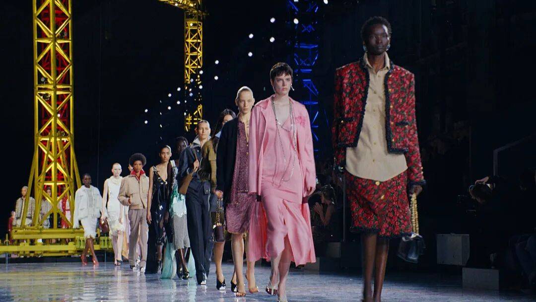 临时装置成为本季设计师探索空间诗学的重要手段。Chanel在Grand Palais的“建筑工地”秀场中,以银色颗粒地面与巨型起重机装置,将工业结构与美好年代的钢铁穹顶对撞。创意总监Matthieu Blazy通过《Just Dance》的旋律与《Billy Elliot》的声音片段,赋予空间一种舞动般的节奏感,使秀场成为“持续生成的创作过程”的隐喻。