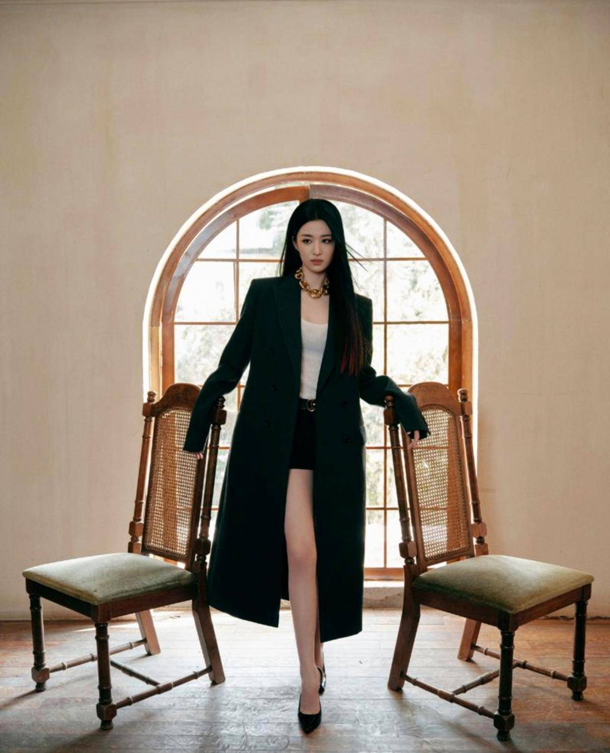 穿黑色旗袍时,以立领盘扣结合波浪卷发,被誉“移动的仪态教科书”。注重“端庄带狡黠”的细节,如开衩高度克制、湿发与缎面对撞。