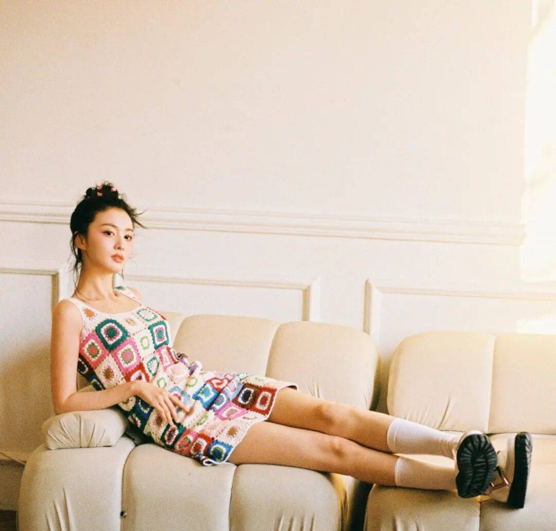 担任朗姿全球代言人时,用针织衫、碎花裙演绎“真实美学”,户外写真中oversized衬衫露肩穿法,展现慵懒与精致平衡。
